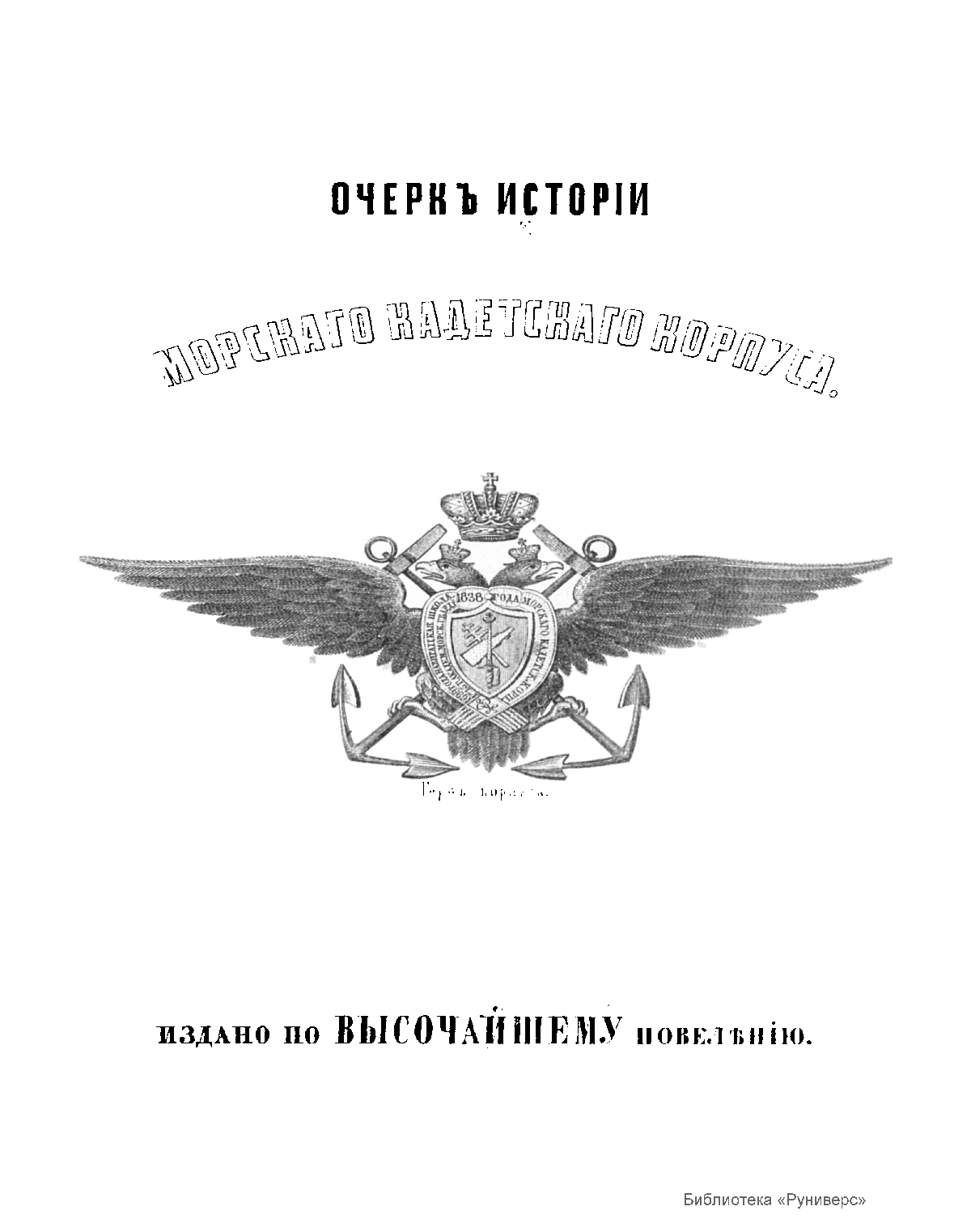 Очеркъ исторiи морскаго кадетскаго корпуса съ приложенiемъ списка воспитанниковъ за 100 лѣтъ