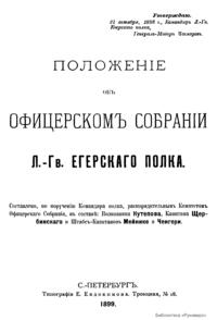 Положенiе объ офицерскомъ собранiи Л.-Гв. Егерскаго полка