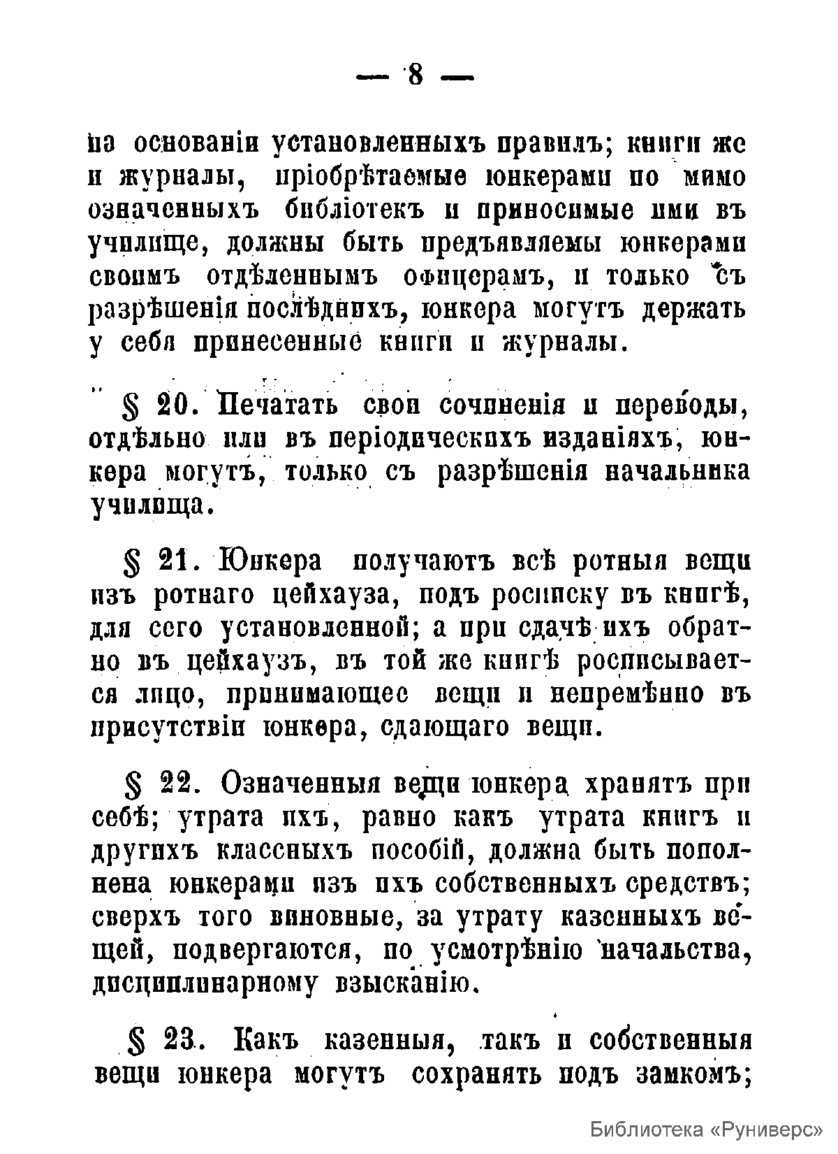 Правила для юнкеровъ 1-го военнаго Павловскаго училища