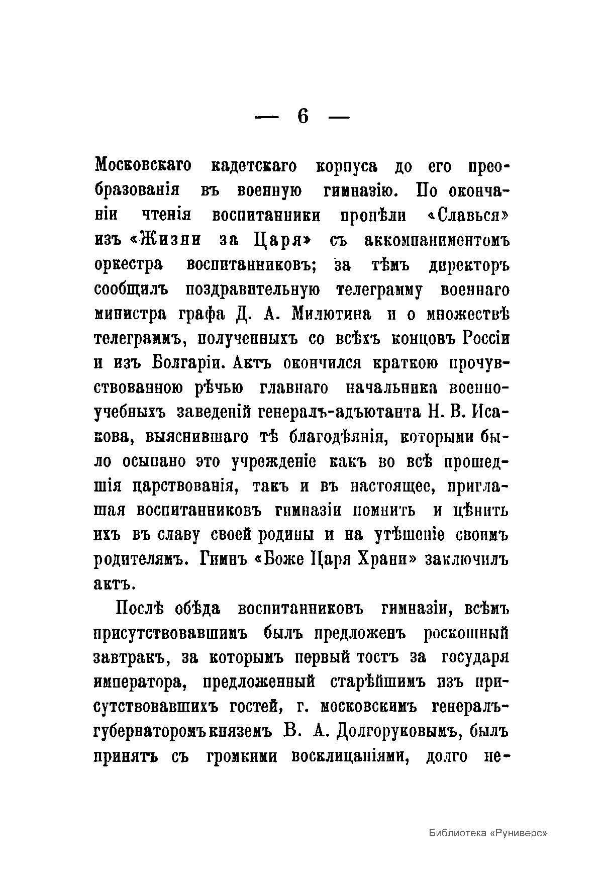 Празднованiе столѣтiя перваго Московскаго кадетскаго корпуса (нынѣшней первой Московской военной гимназiи) 24 ноября 1878 года