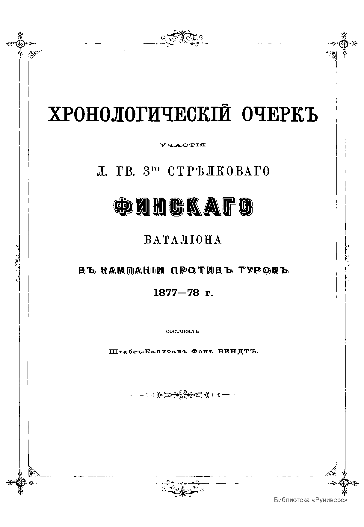 Хронологическiй очеркъ участiя Л.-Гв. 3-го стрѣлкового Финскаго баталiона въ кампанiи противъ Турокъ 1877-78 г