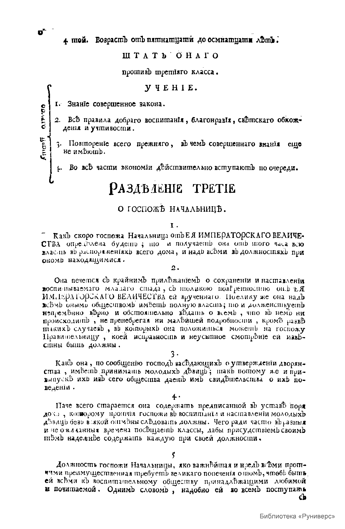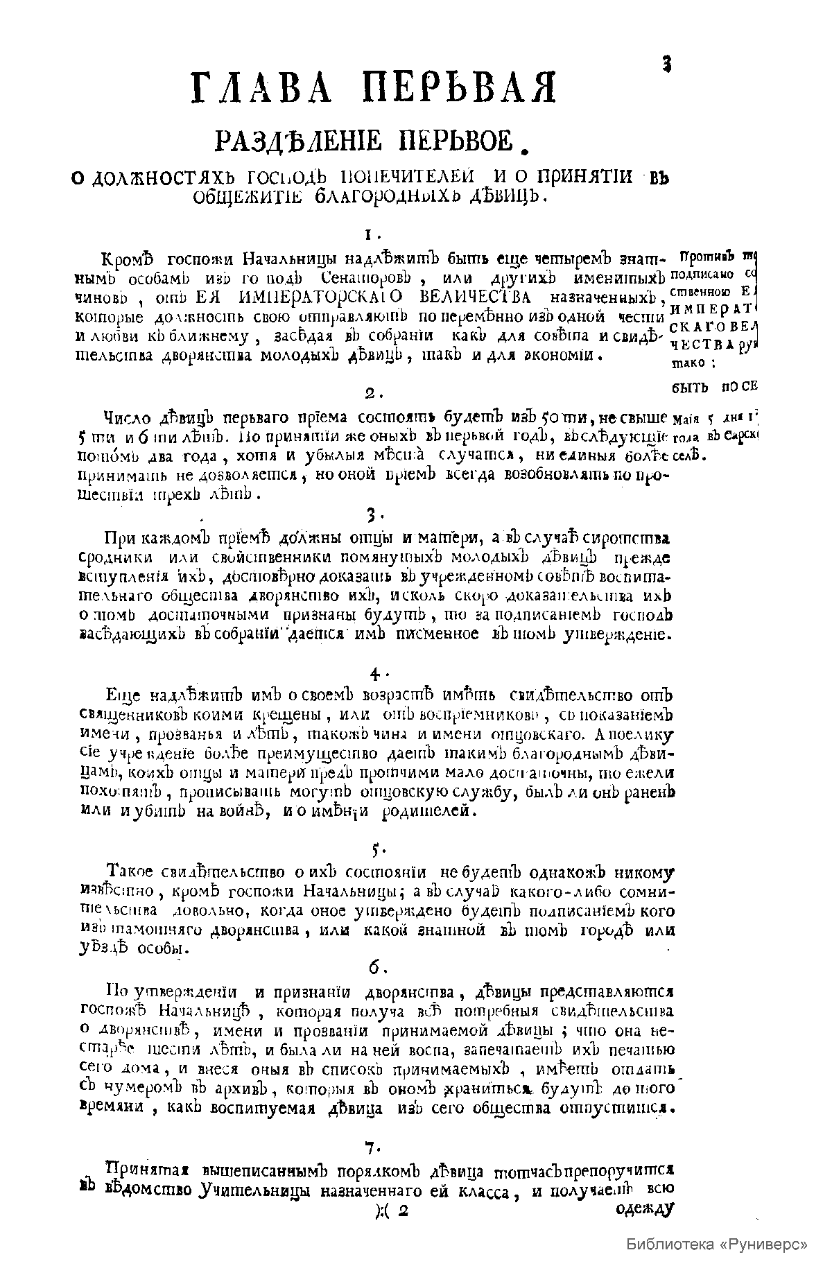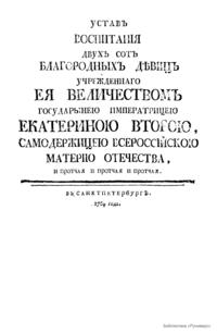 Устав воспитания двухсот благородных девиц учрежденного Её Величеством Государынею Императрицею Екатериною Второю, Самодержицею Всероссийскою Материю Отечества, и прочее и прочее и прочее