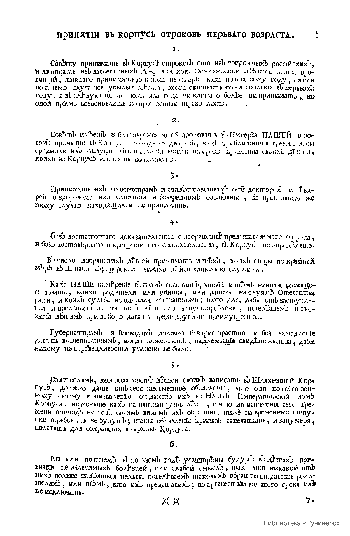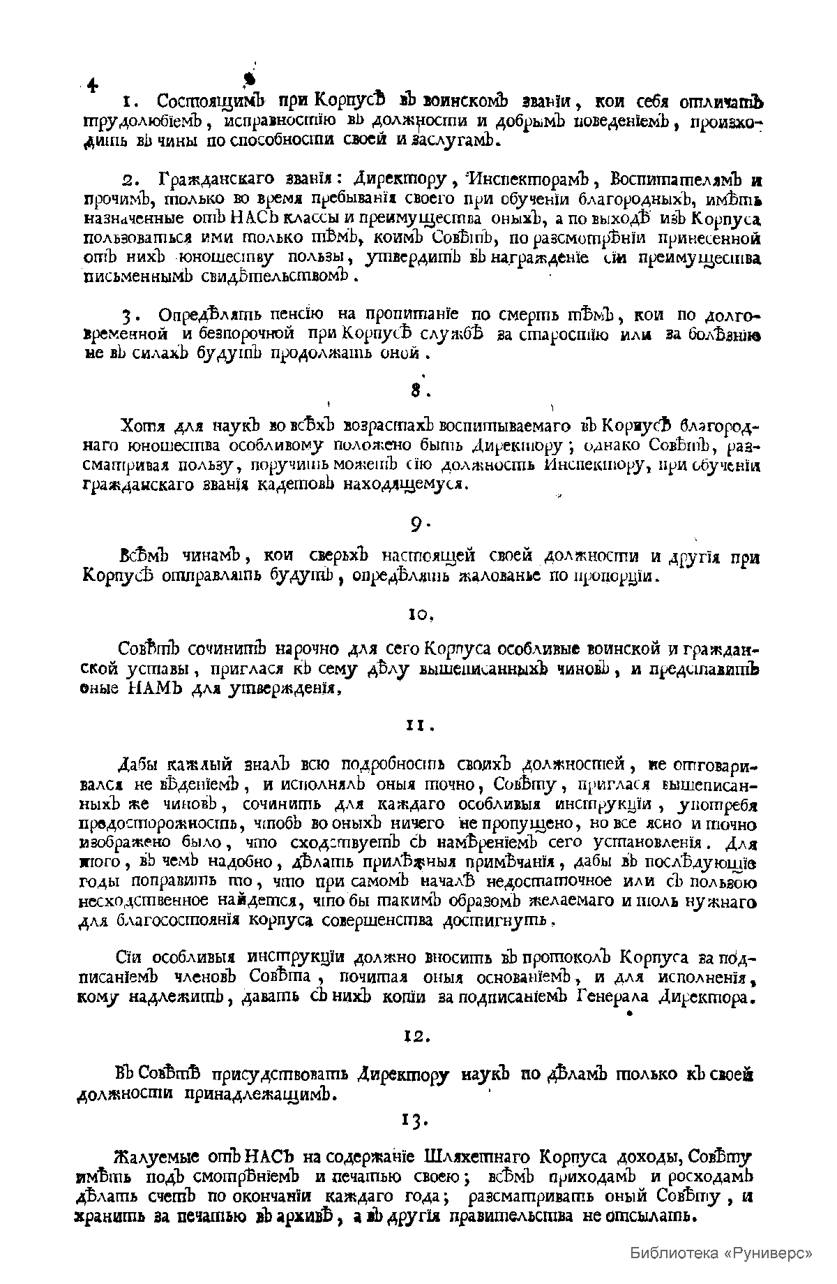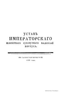 Устав императорского Шляхетного сухопутного кадетского корпуса