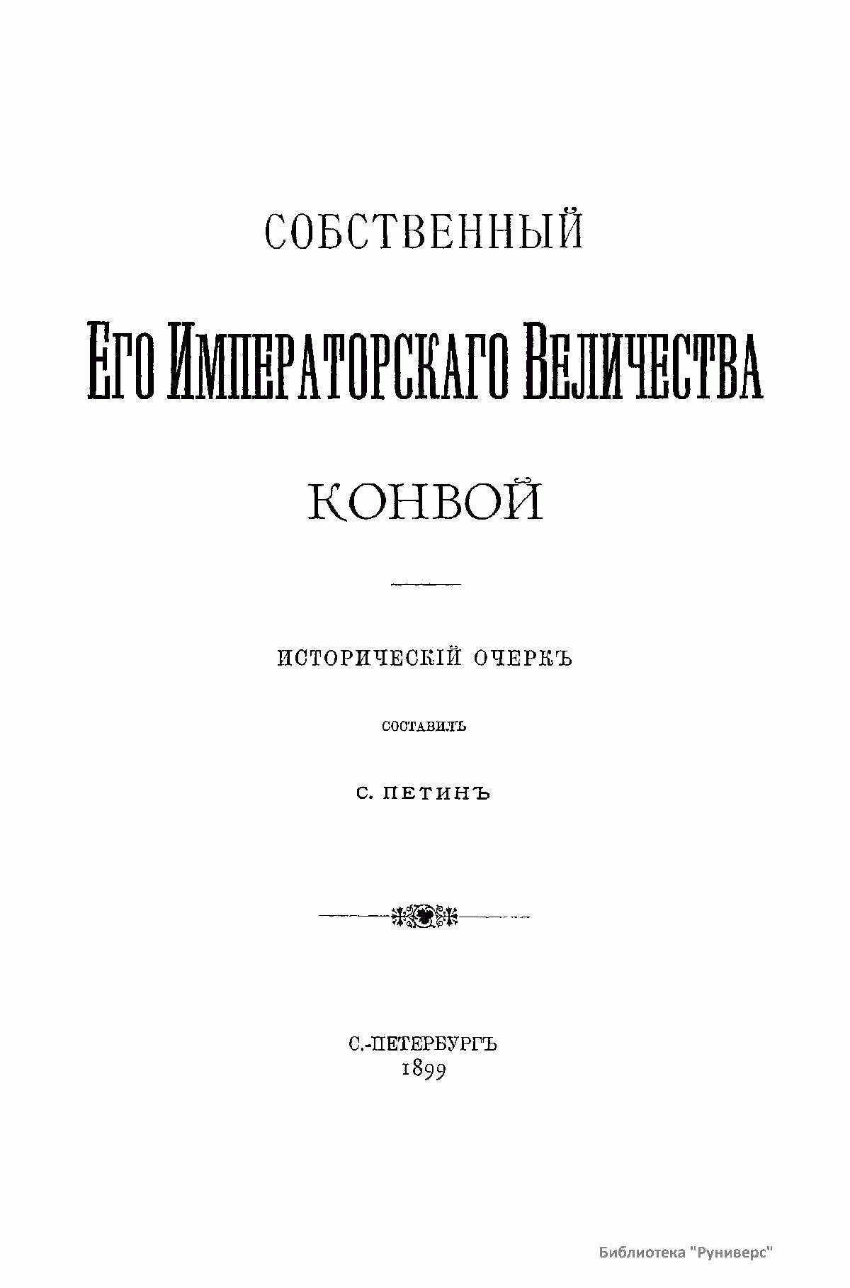 На протяжении последних десятилетий правления династии Романовых их личную безопасность обеспечивало специальное гвардейское подразделение – Собственный Его Императорского Величества Конвой или Царский конвой. Интересно, что в его составе помимо казаков из Терского и Кубанского казачьих войск служили старообрядцы, горцы-мусульмане Кавказа, азербайджанцы (команда мусульман), грузины, крымские татары и другие народности Российской Империи. В книге, подготовленной C. Петиным, описаны яркие страницы истории конвоя, начиная с Отечественной войны 1812 г. до конца XIX в. В приложениях приведены сведения о составе, вооружении и обмундировании подразделения.