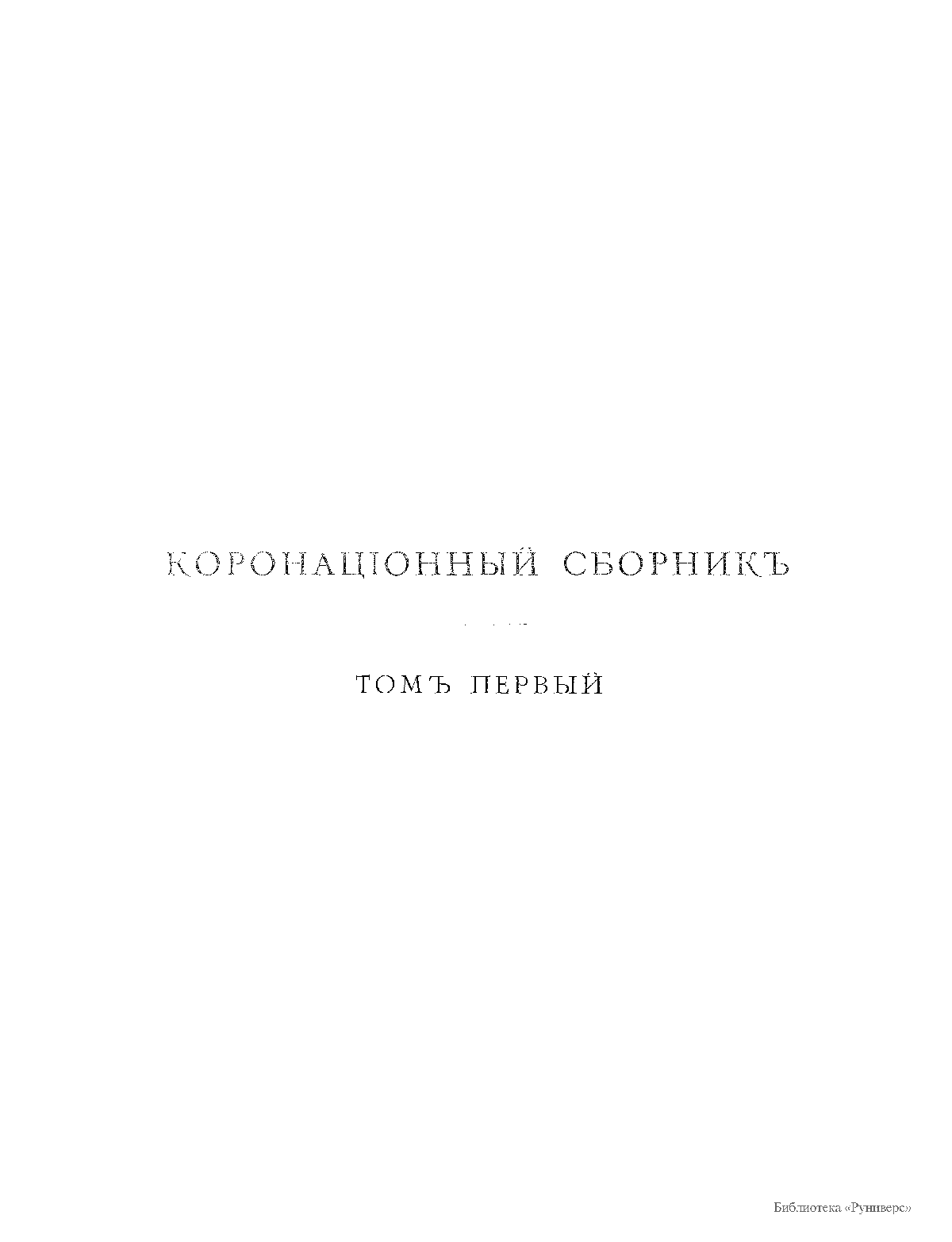 Коронацiонный сборникъ. Съ соизволенiя Его Императорскаго Величества Государя Императора. Томъ первый