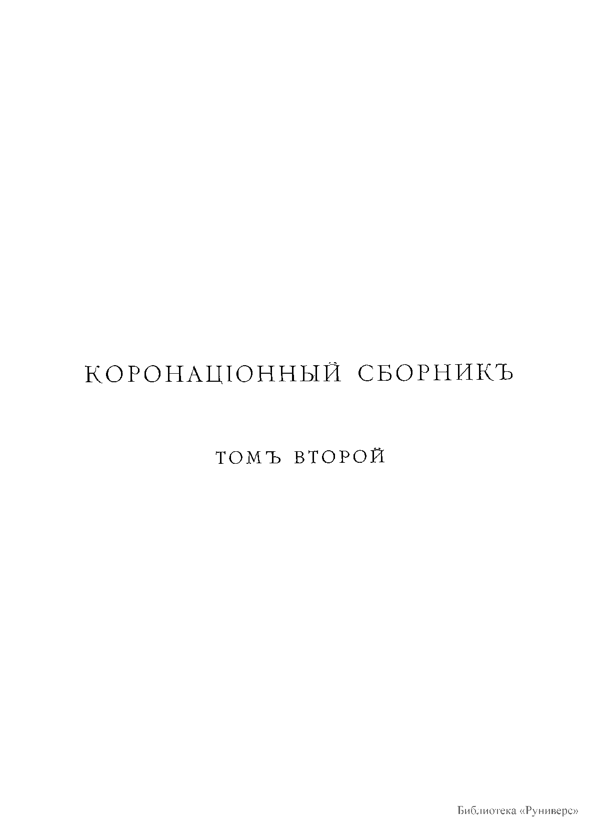 Коронацiонный сборникъ. Съ соизволенiя Его Императорскаго Величества Государя Императора. Томъ второй
