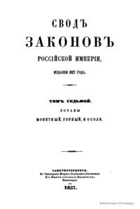 Сводъ законовъ Россiйской имперiи. Томъ седьмой. Уставы монетный, горный, и о соли