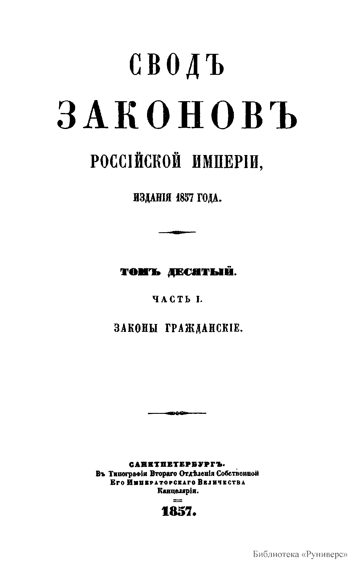 Свод законов Российской империи. Том десятый. Часть I. Законы гражданские