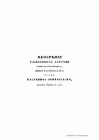 Обозрение главнейших действий генерал-фельдмаршала князя Варшавского, графа Паскевича-Эриванского, против турок в Азии