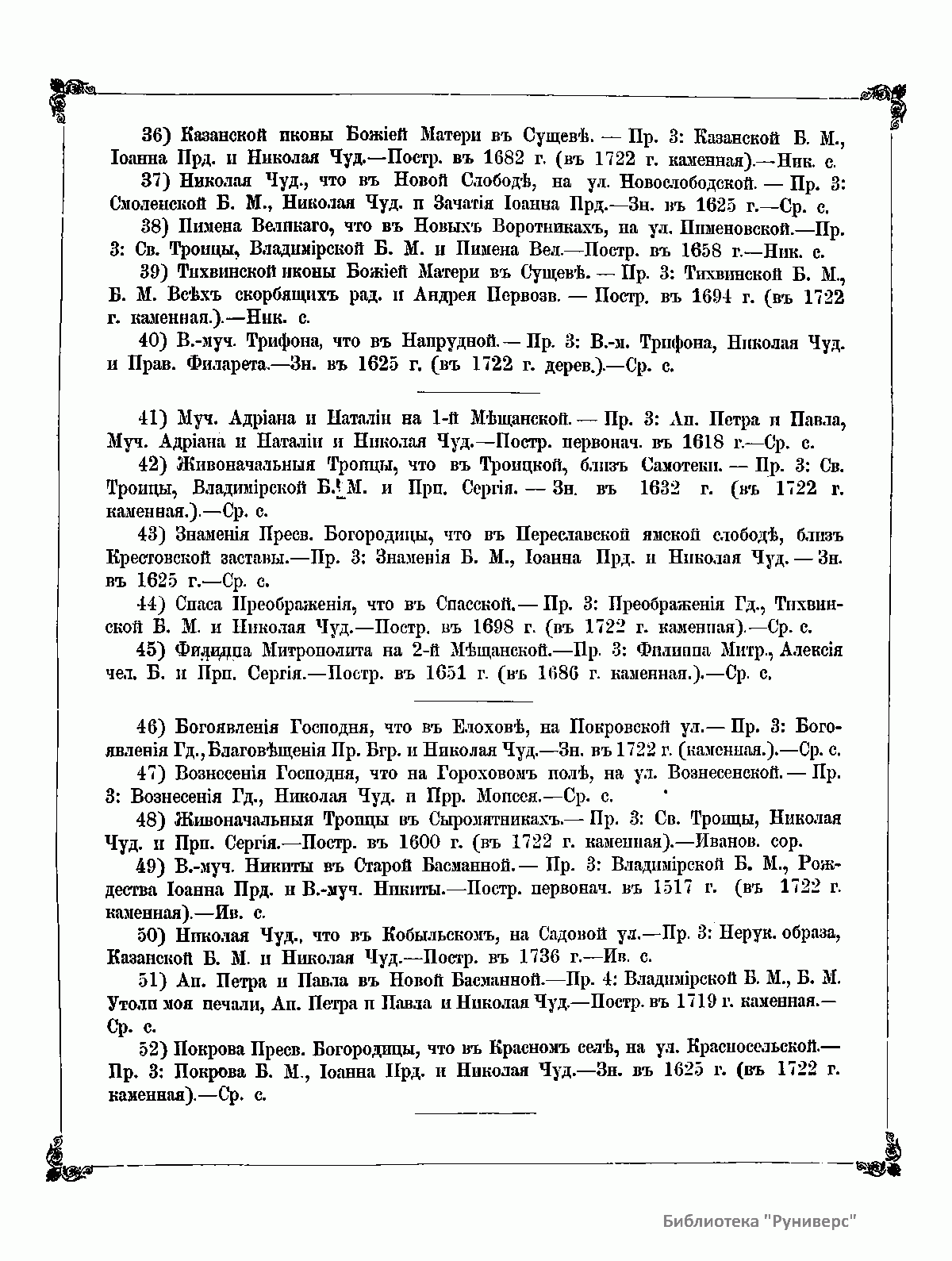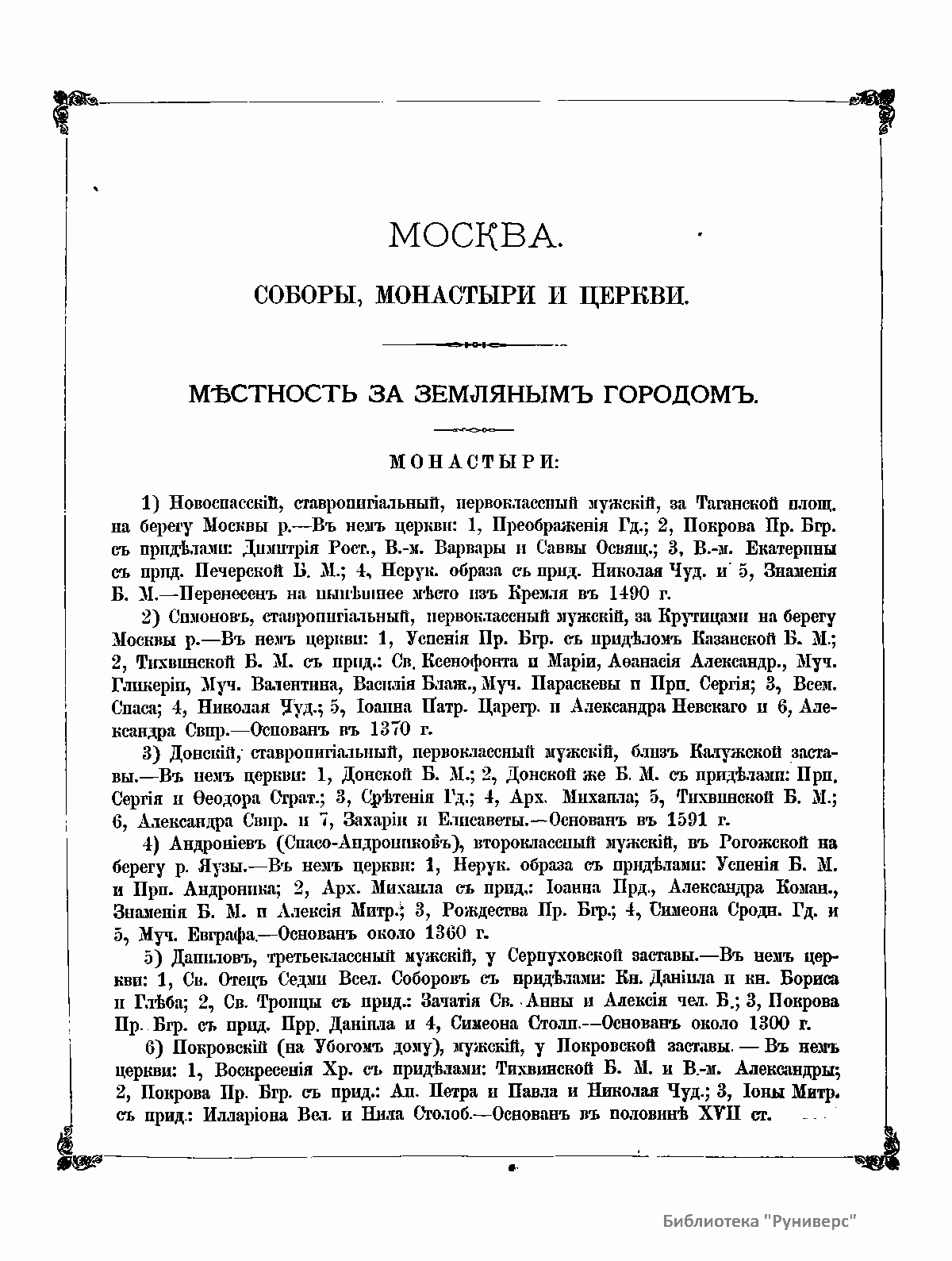 Москва. Соборы, монастыри и церкви. Местность за Землянымъ городомъ
