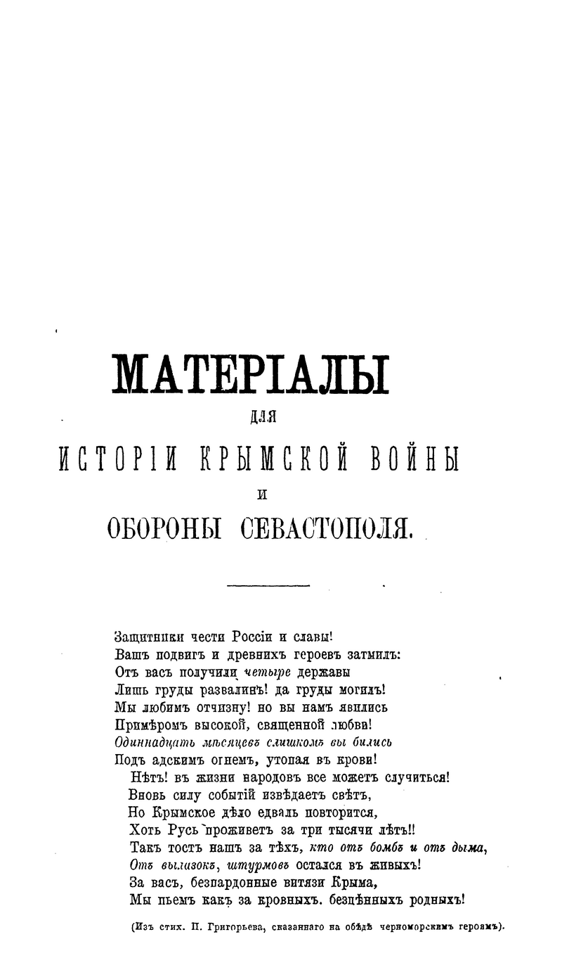 Материалы для истории Крымской войны и обороны Севастополя