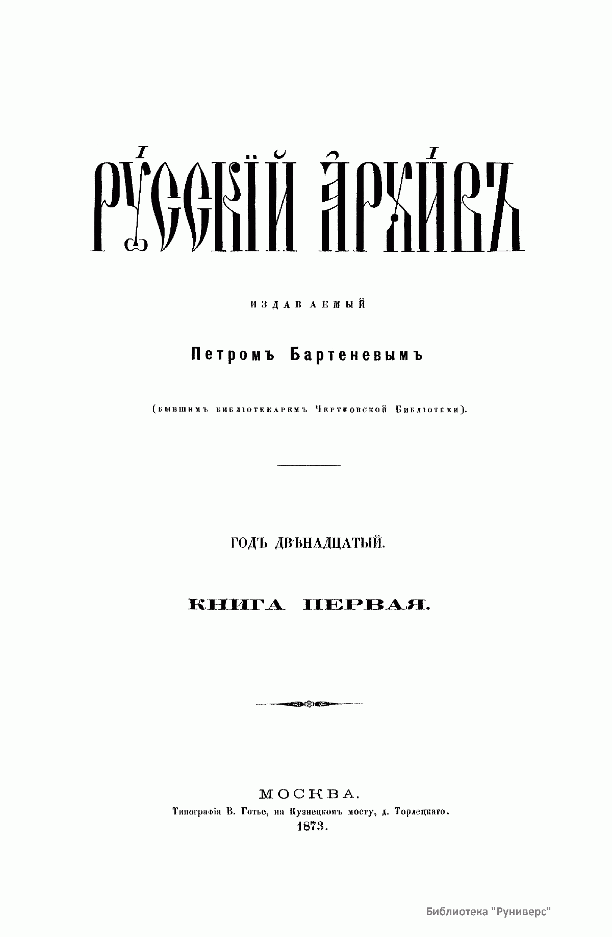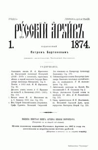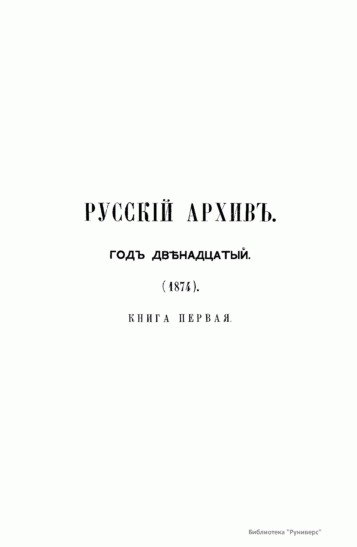 Русский архив. Историко-литературный сборник. 1874. Выпуски 1-4