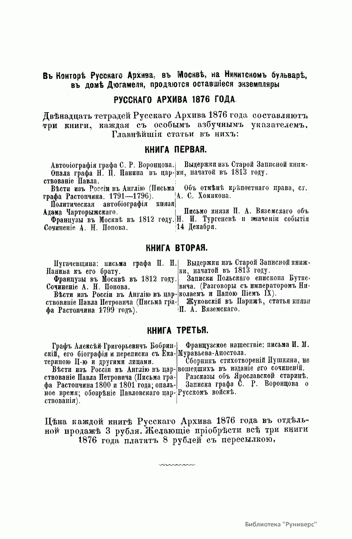 Русский архив. Историко-литературный сборник. 1877. Выпуски 1-4