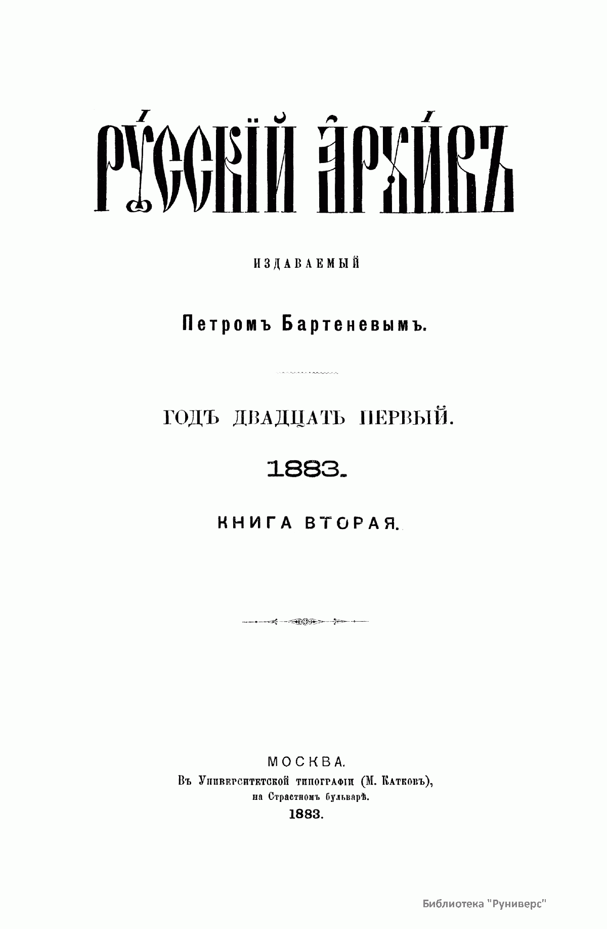 Русскiй архивъ. Историко-литературный сборникъ. 1883. Выпуски 3-4