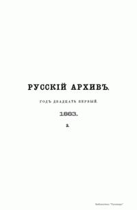 Русский архив. Историко-литературный сборник. 1883. Выпуски 3-4