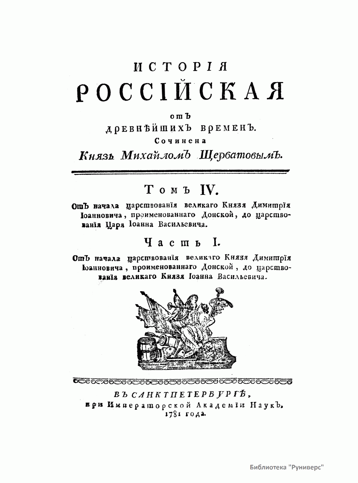 Исторiя россiйская отъ древнѣйшихъ времянъ. Томъ IV. Часть I