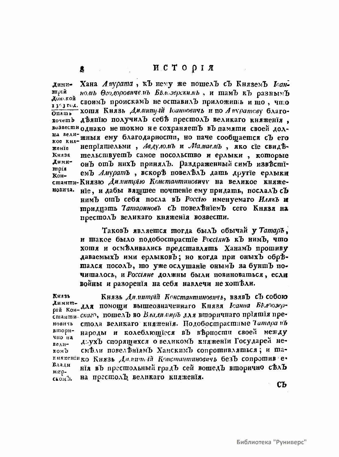 Главным трудом жизни князя М. М. Щербатова (1733–1790) стала «История Российская с древнейших времен», к написанию которой Щербатов приступил по поручению