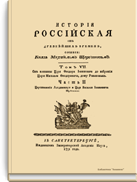 (также князю доверили разобрать и систематизировать архив Петра I). Начиная с 1770 г. вышло 7 томов, охватывающих историю России с древнейших времен до 1610 г. Следуя за идеями французских просветителей, Щербатов не только описывал действия исторических личностей, но и указывал, что за их поступками кроются определенные мысли, идеи, нравы, господствующие в обществе. И это было новым по отношению к предшествующей историографии.