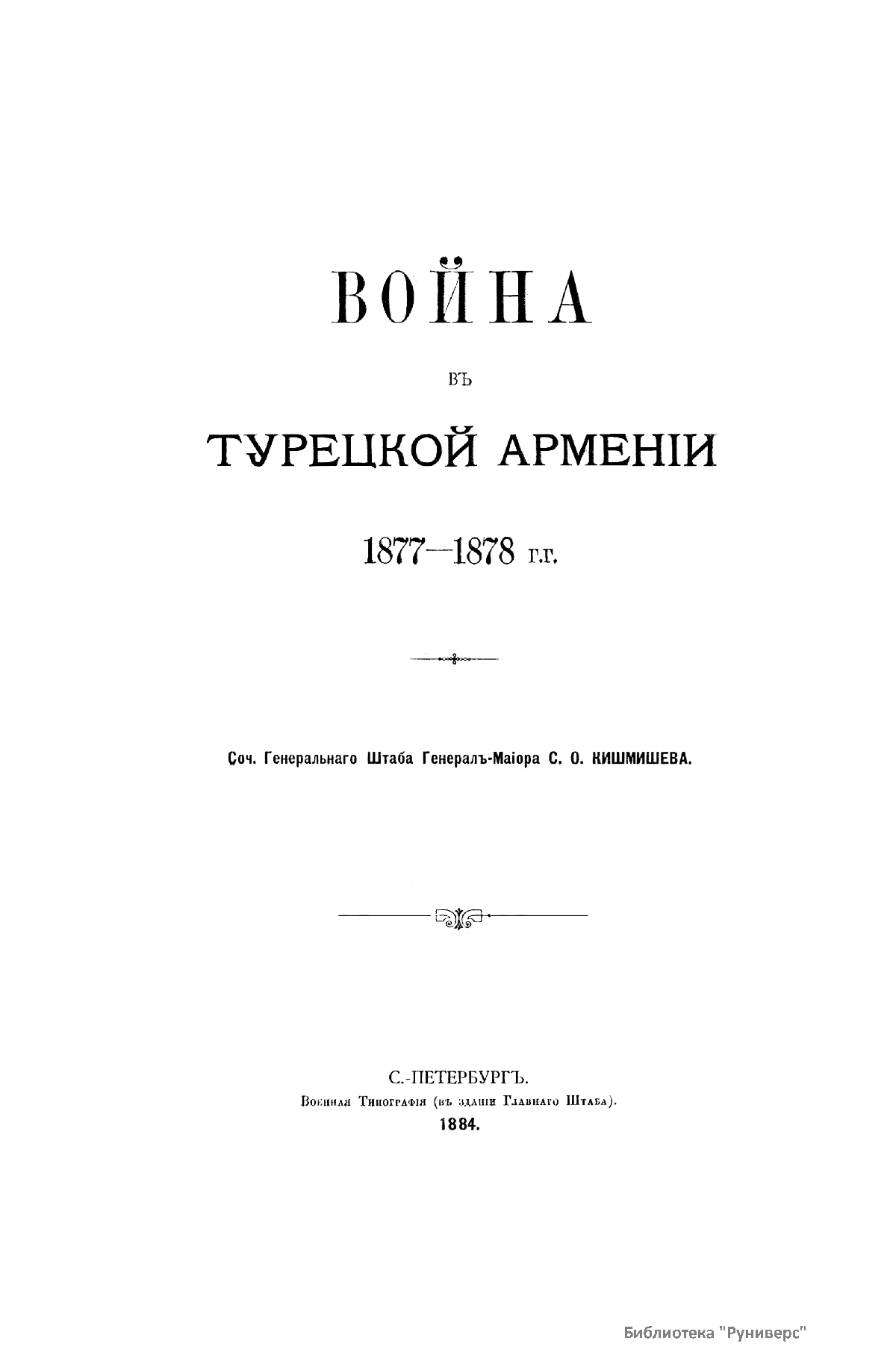 Война въ Турецкой Арменiи 1877-1878 г.г.