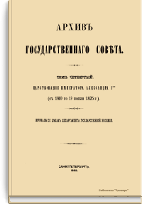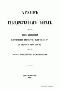 Архивъ Государственнаго совѣта. Томъ четвертый. Совѣтъ въ царствованiе императора Александра I. С 1810 по 19 ноября 1825 г. Журналы по дѣламъ департамента государственной экономiи. Часть первая