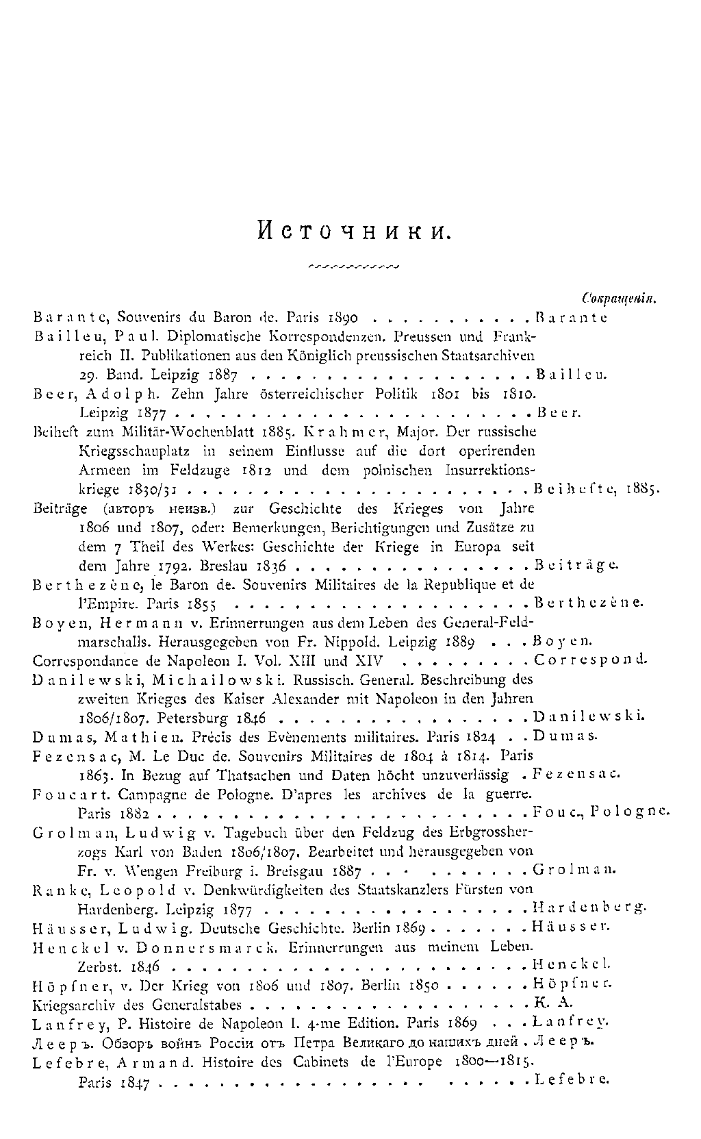 Перевод на русский язык фундаментального многотомного военно-исторического труда по истории войны русско-прусского союза с Наполеоном в 1806-1807 годах, написанного немецким военным историком Оскаром фон Леттов-Форбеком, был подготовлен при штабе Варшавского военного округа под руководством генерал-лейтенанта Генерального штаба, профессора военной истории академии Генерального штаба А.К. Пузыревского, получив при этом одобрение Военного министерства. Деятельность А.К. Пузыревского как одного из выдающихся военных педагогов и просветителей получила в России широкую известность. Представленное им исследование немецкого военного писателя, снабженное многочисленными картами и схемами боевых действий, сих пор представляет научный интерес. Одним из важнейших достоинств данного исследования является то, что автор широко использовал богатейший документальный массив как прусских, так и французских военных архивов, создав объективную картину одного из сложнейших этапов эпохи наполеоновских войн. Русско-прусско-французская война 1806-1807 гг. война между 4-й коалицией европейских держав (Великобритания, Россия, Пруссия, Саксония, Швеция) и наполеоновской Францией. Фактически эти две кампании являлась продолжением русско-австро-французской войны 1805 г. Не имея общего плана войны, союзники действовали несогласованно, что позволило Наполеону разбить их поочерёдно. Так 2 (14) октября 1806 г. в масштабном сражении под Йеной и Ауэрштадтом французская армия разгромила прусско-саксонские войска, после чего наполеоновские войска оккупировали большую часть Пруссии и 12 (24) октября заняли Берлин. Русская армия в составе трёх корпусов (около 160 тыс. чел.) под командованием генерал-фельдмаршала М. Ф. Каменского сосредоточилась в районе Пултуск, Остроленка, Брест-Литовск, выдвинув передовые отряды к Висле. 16 (28) ноября французские войска заняли Варшаву. Наполеон предпринял попытку окружить главные силы русских войск, но 14 (26) декабря в сражении под Пултуском русские войска сорвали этот план, нанеся поражение корпусу маршала Ж. Ланна. Затем русская армия отошла в район Тыкоцина, а наполеоновские войска расположились на зимние квартиры. 4 (16) января 1807 русская армия под командованием нового командующего генерал-адъютанта Л.Л. Беннигсена начала наступление из района Бялы в Восточную Пруссию с целью не допустить занятия французами Кенигсберга и Пиллау и нанести поражение изолированным корпусам Нея и Бернадота. Наполеон, узнав о продвижении русских войск, 20 января (1 февраля) направил главные силы на север, пытаясь обойти левый фланг русской армии и отрезать экспедиционные силы русских от России. Русские войска, ведя арьергардные бои, отошли к Прейсиш-Эйлау, где 26–27 января (7– 8 февраля) произошло встречное упорное сражение, в котором русские войска успешно отразили удары наполеоновской армии. 2 (14) июня 1807 г. в сражении под Фридландом русская армия, проявив чудеса героизма и мужества, вследствие неадекватных мер командования, была вынуждена отступить. В июне 1807 г. состоялось свидание Наполеона с императором Александром I в Тильзите и был подписан тяжёлый для России вынужденный союзный договор с наполеоновской Францией. Все эти военно-исторические события детально изложены в данном труде.