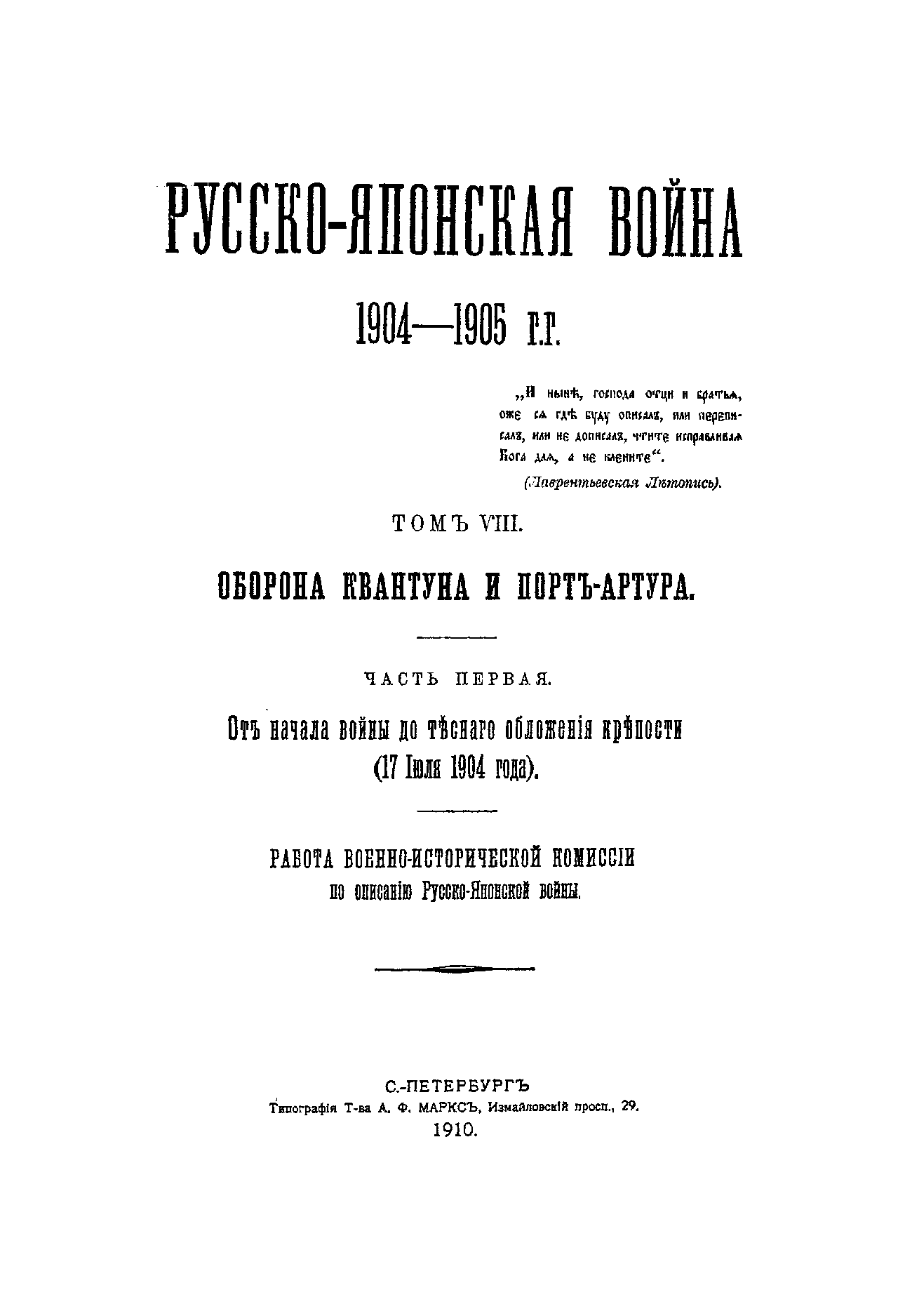 К началу 1910 г. работа была закончена, и в течение года была издана «Русско-японская война