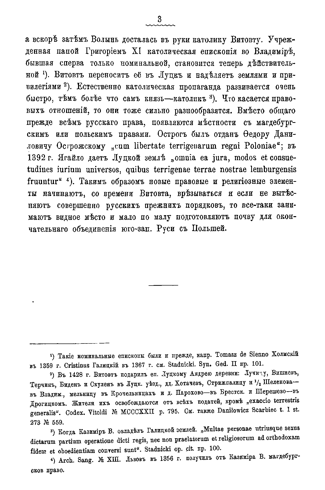 Автор доводит историю Волыни до конца XIV в., когда она достаётся литовскому князю католику Витовту. Именно с этого времени здесь начинают преобладать новые религиозные и правовые элементы и постепенно подготавливают почву для окончательного объединения юго-западной Руси с Польшей – унии 1569 года