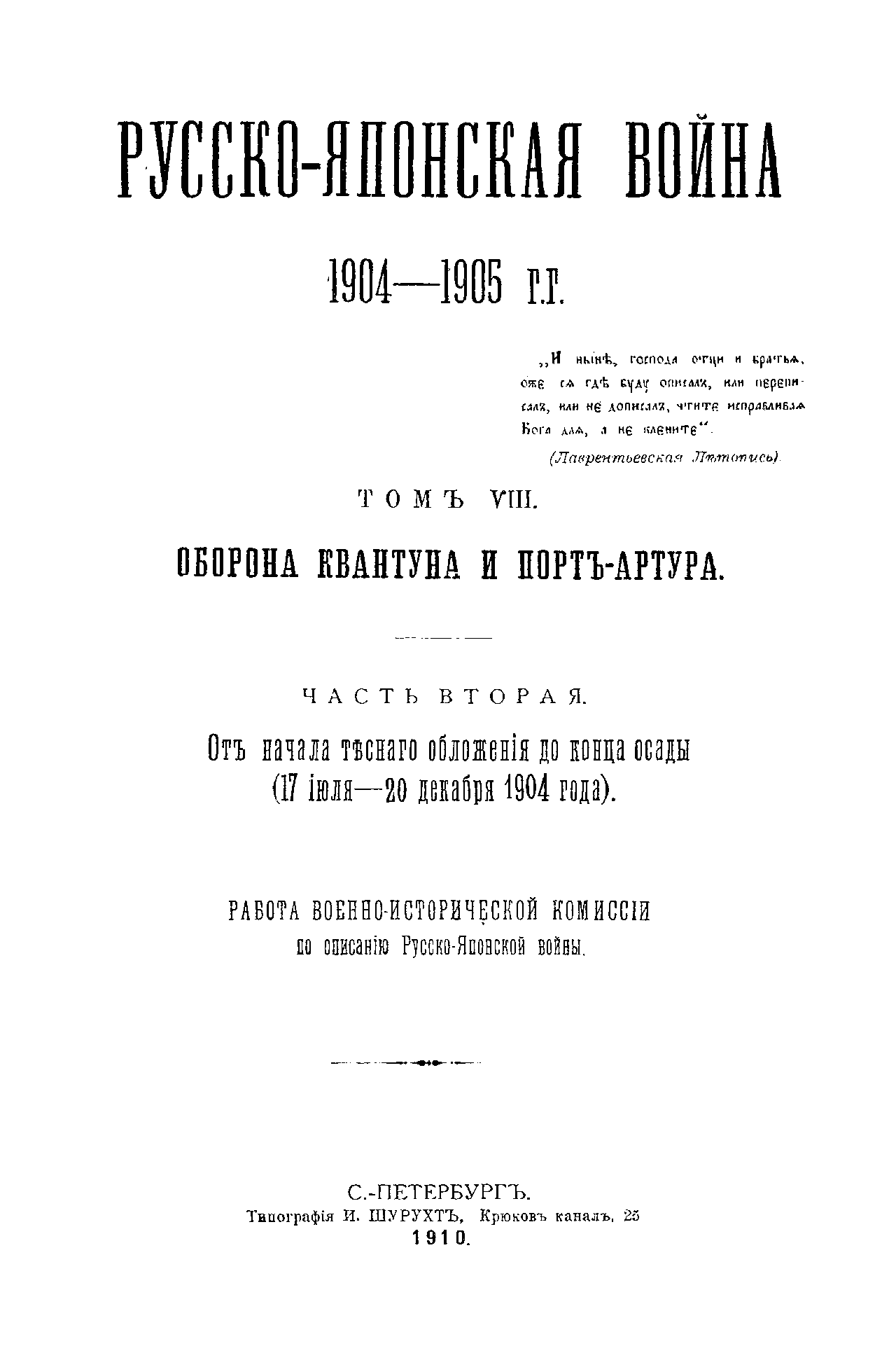 Русско-Японская война 1904-1905 гг. Томъ VIII. Оборона Квантуна и Портъ-Артура. Часть вторая. Отъ начала тѣснаго обложенiя до конца осады (17 iюля - 20 декабря 1904)
