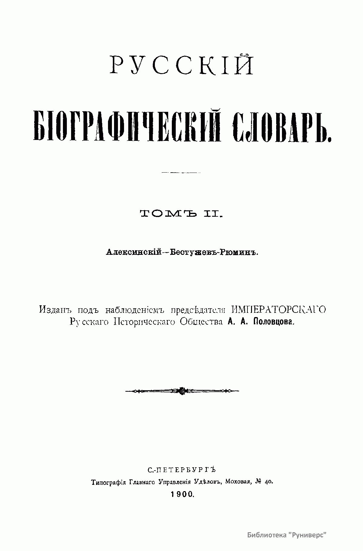 Русскiй бiографическiй словарь. Томъ II. Алексинскiй - Бестужевъ-Рюминъ