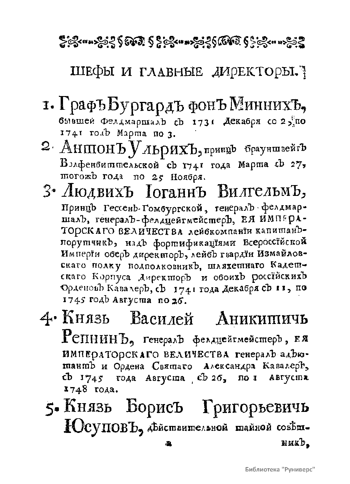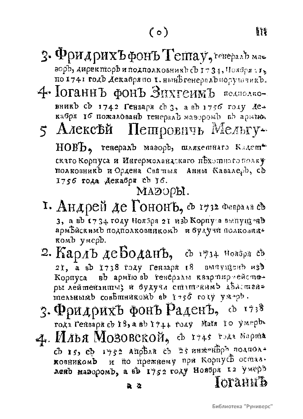 Имянной списокъ всѣмъ бывшимъ и нынѣ находящемся въ Сухопутномъ Шляхетномъ кадетскомъ корпусѣ штабъ-оберъ-офицѣрамъ и кадетамъ