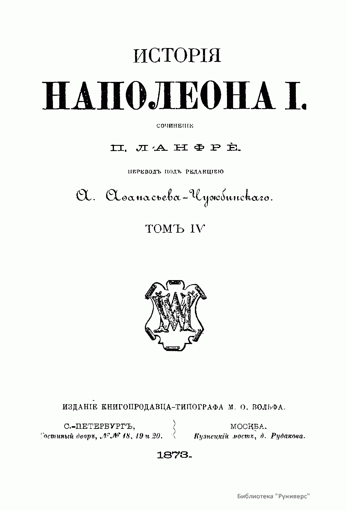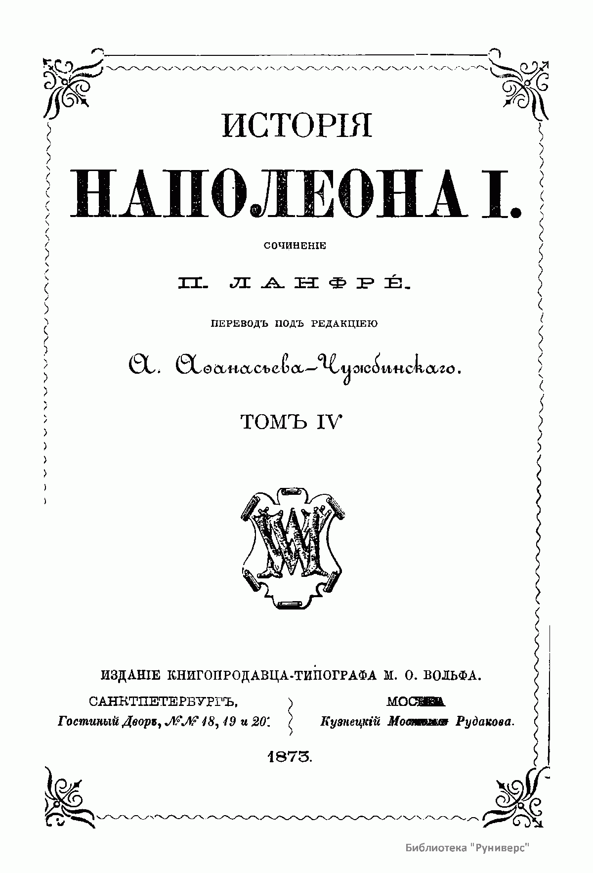 Издание книгопродавца-типографа М.О. Вольфа