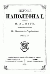 Пятитомная «История Наполеона I» французского историка середины XIX в. Пьера Ланфре (1828 – 1877 гг.) изданная в Санкт-Петербурге в 1870 – 1877 гг. охватывает период с рождения Наполеона Бонапарта до осложнения русско-французских отношений в 1811 г. и подготовки военной кампании в России. В ней содержится подробное изложение событий Наполеоновских войн, сопровождавшееся критической оценкой деятельности Наполеона I. Данная работа П. Ланфре незакончена в связи со смертью автора.
