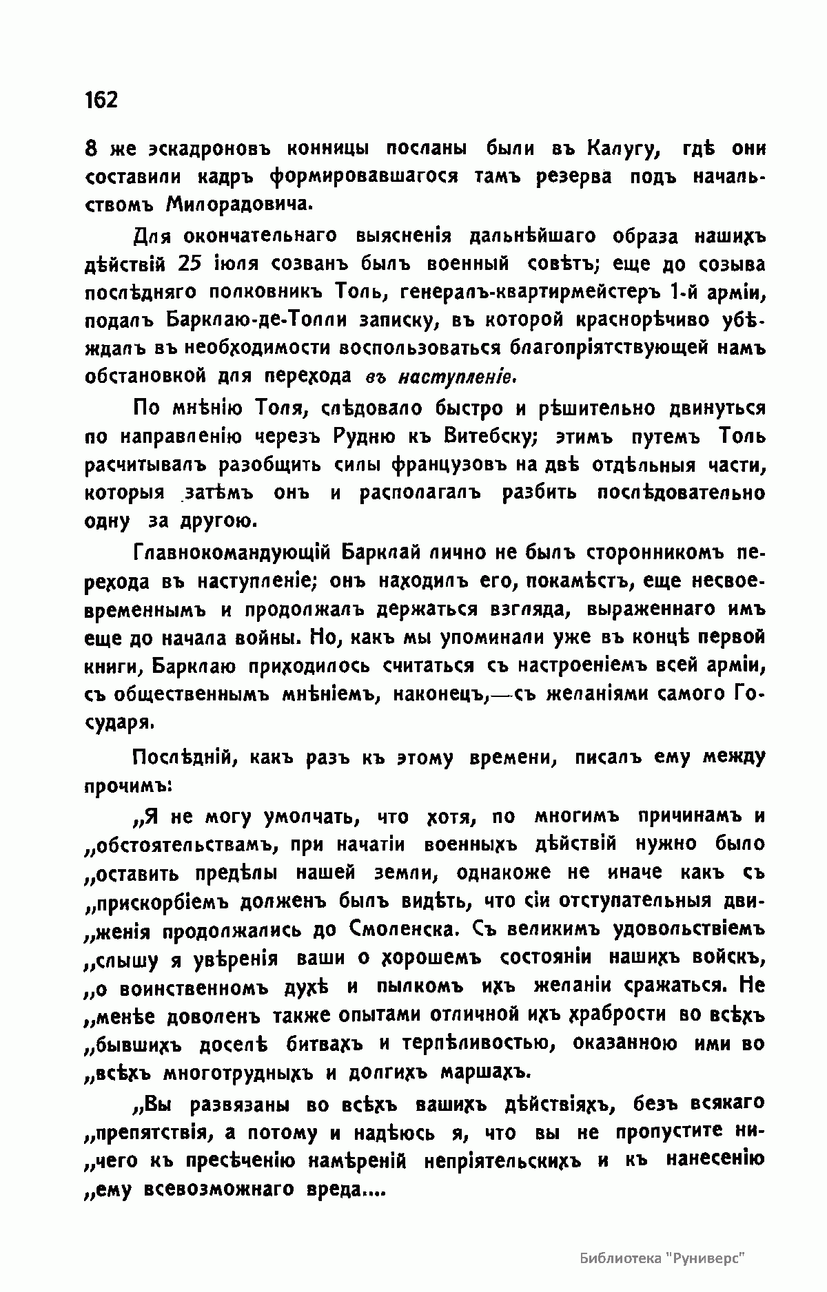 Книга военного историка, полковника Петра Андреевича Ниве «Отечественная война» является юбилейным изданием 1912 г., которое имело целью восстановить точную, во всех ее деталях историческую канву событий Отечественной войны 1812 г. Данное издание богато иллюстрировано, в нем представлены планы и карты всех крупных сражений «Русской кампании Наполеона».