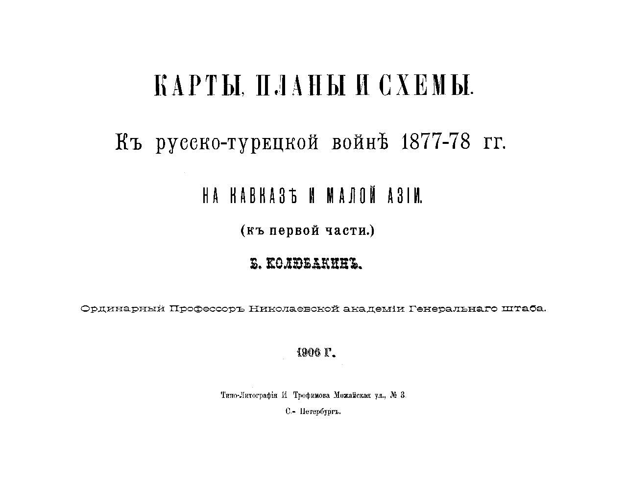 Карты, планы и схемы. Къ Русско-Турецкой войнѣ 1877-1878 гг. на Кавказѣ и въ Малой Азіи