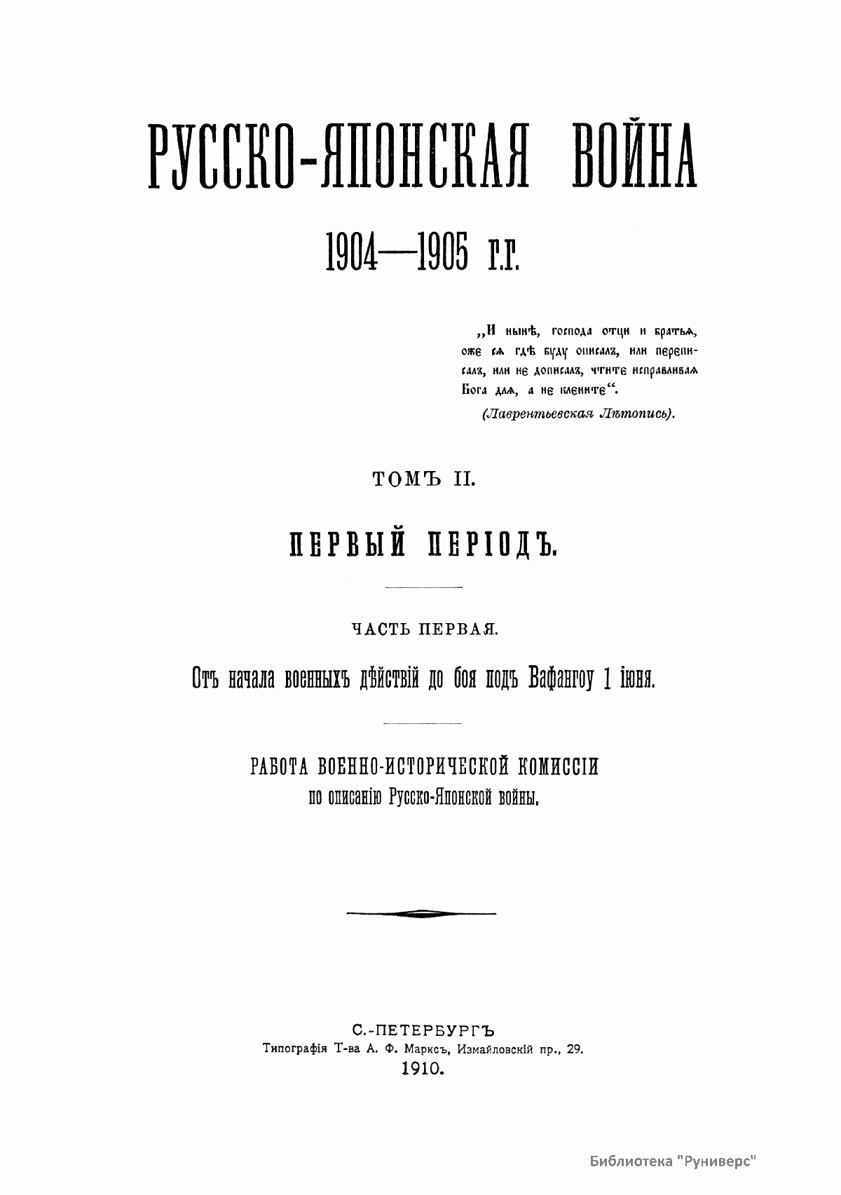 К началу 1910 г. работа была закончена, и в течение года была издана «Русско-японская война