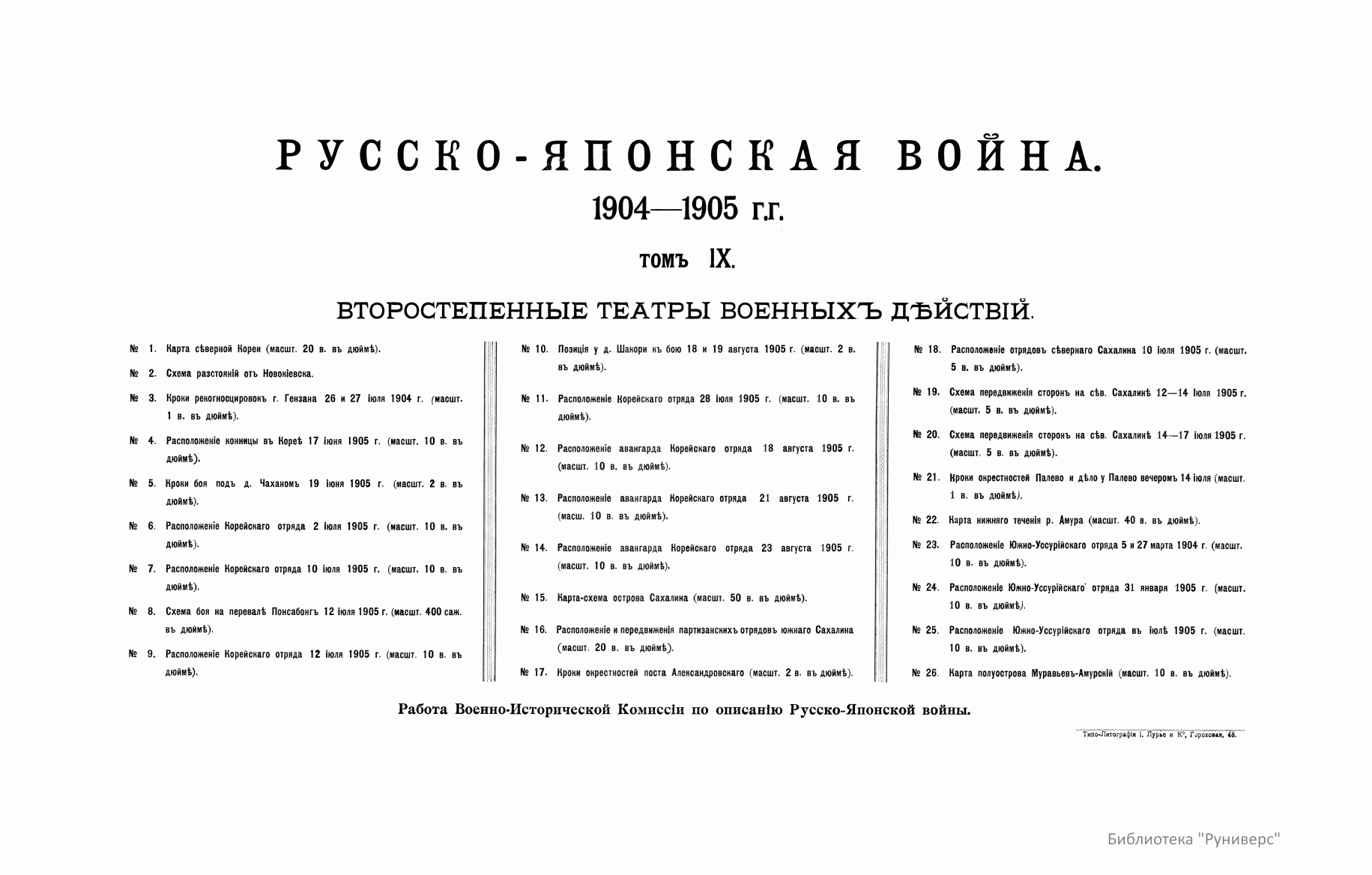 Том IX. Второстепенные театры военных действий. Часть первая. Военные действия в Северо-Восточной Корее. Часть вторая. Военные действия на острове Сахалин и на западном побережье Татарского пролива. Часть третья. Оборона Южно-Уссурийского края. Часть четвертая. Оборона крепости Владивосток
