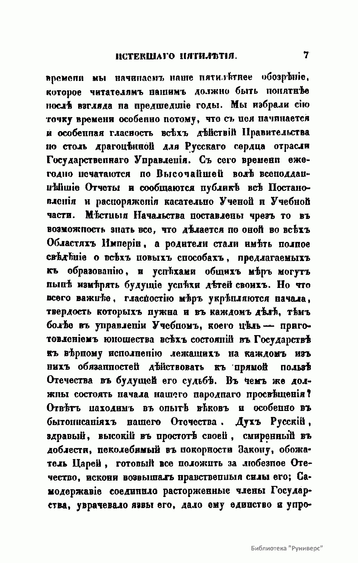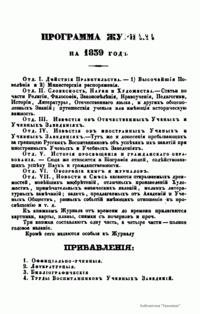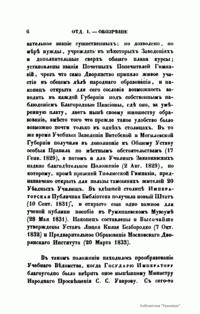Журнал Министерства народного просвещения выходил с 1834-го по 1917 год. Официальный периодический журнал об успехах просвещения в России. Издатели журнала уверены в том, что «если для каждого человека необходим выход из грубой тьмы невежества и беспрерывное дальнейшее движение к свету, то для народов необходимо попечительное участие правительства в образовании. Только правительство имеет все средства знать и высоту успехов всемирного образования, и настоящие нужды Отечества».