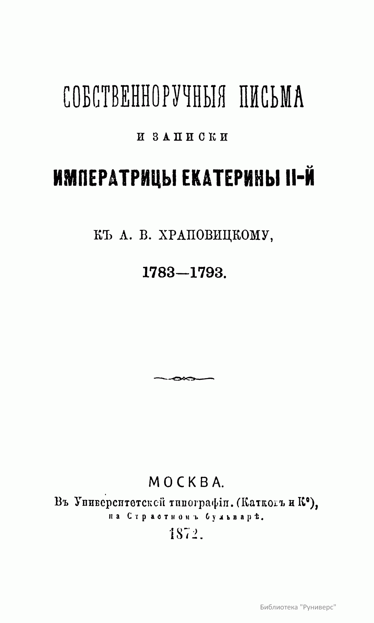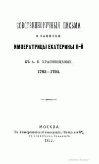 Собственноручныя письма и записки императрицы Екатерины II-й къ А.В. Храповицкому, 1783-1793
