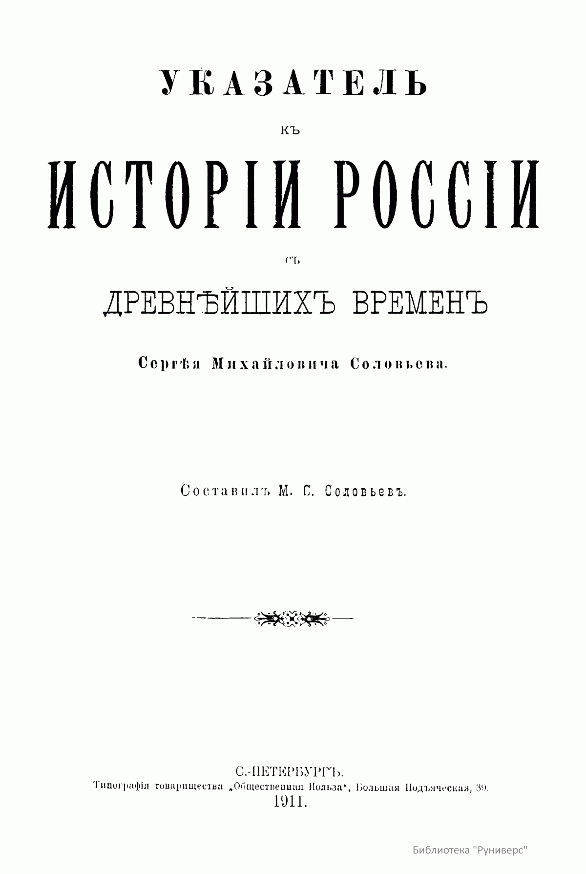 Указатель къ исторiи Россiи с древнѣйшихъ временъ Сергѣя Михайловича Соловьева