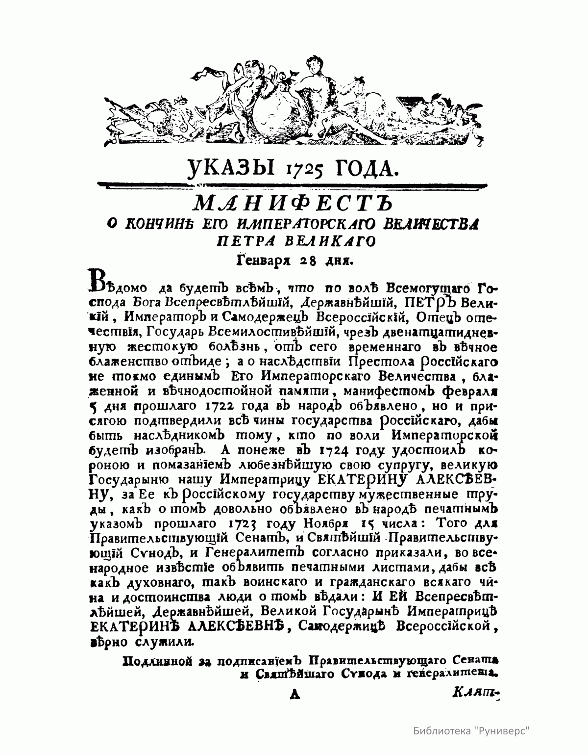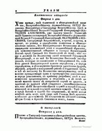 Указы блаженныя и вѣчнодостойныя памяти Великой Государыни Императрицы Екатерины Алексiевны и Государя Императора Петра Втораго, состоявшiеся съ 1725 генваря съ 28 числа по 1730 годъ