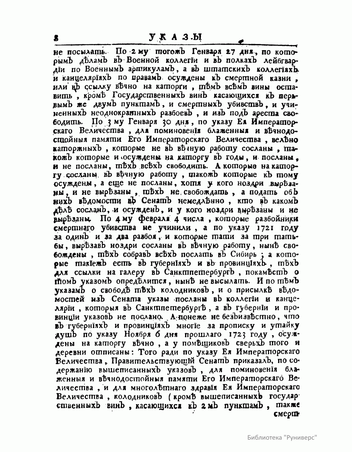 Указы блаженные и вечнодостойные памяти Великой Государыни Императрицы Екатерины Алексеевны и Государя Императора Петра Второго, состоявшиеся с 1725 января с 28 числа по 1730 год