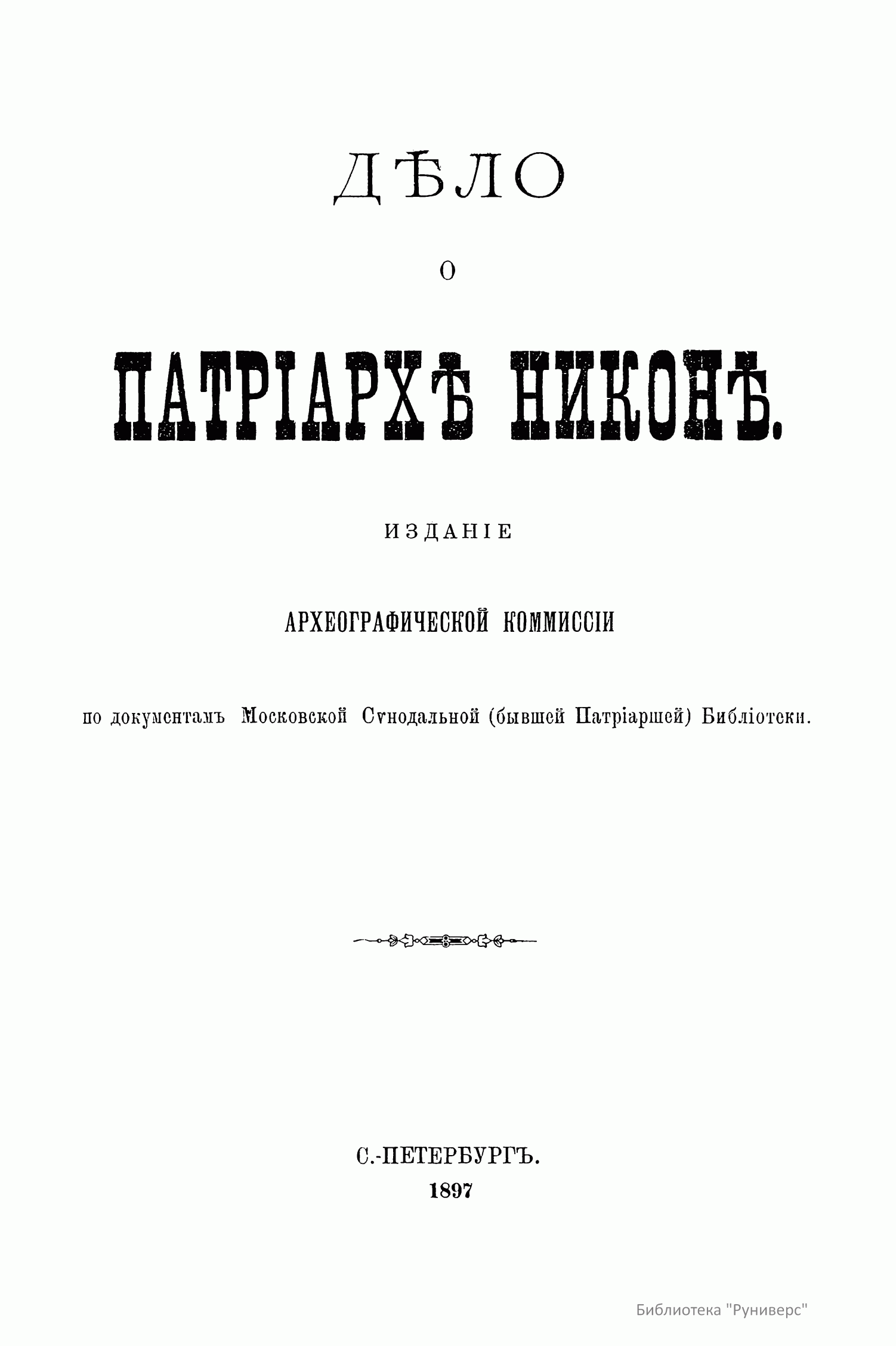 Дѣло о Патрiархѣ Никонѣ