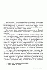 Никон (Никита Минов) (1605 – 1681), русский патриарх с 1652 г. Провел церковные реформы, вызвавшие раскол православной Руси. Как полагают историки, от четверти до трети населения сохранило верность древней традиции, верность старообрядчеству (старообрядцами стали называть тех, кто не принял реформ Никона и придерживался в религиозной и бытовой практике дореформенных правил и обычаев). Старообрядчество – самое мощное религиозное движение за всю русскую историю. Вмешательство Никона во внутреннюю и внешнюю политику государства с тезисом «священство выше царства» повлекло разрыв с царем. В 1658 г. Никон внезапно оставил патриарший престол, а собор 1666 – 1667 гг. осудил его и вождей старообрядчества, одновременно признав реформу. Никон был сослан. В настоящем издании опубликовано судное дело о патриархе Никоне. Подлинник его состоял из 12 столбцов различных размеров и одной тетради и хранился в Московской Синодальной библиотеке. Во вступительной статье подробно рассматривается история материалов о Никоне, а в оглавлении дается перечень всех 123 опубликованных документов.