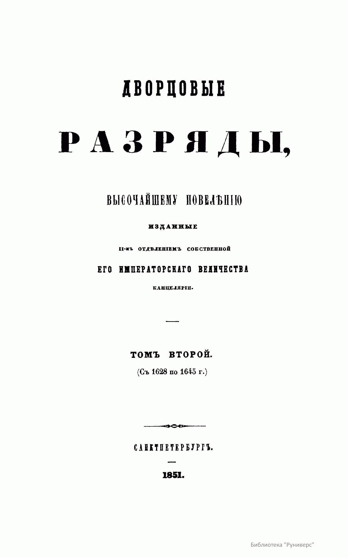Дворцовые разряды. Томъ второй. Съ 1628 по 1645 г.