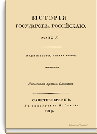 В 1816 году он выпустил первые восемь томов «Истории государства Российского», трёхтысячный тираж которых разошелся в течение месяца. В последующие годы вышли еще три тома «Истории», появился ряд переводов её на главнейшие европейские языки. Тенденциозно-монархическое освещение русского исторического процесса сблизило Карамзина с двором и царем, поселившим его подле себя в Царском Селе. Незаконченный XII том был издан уже после его смерти.