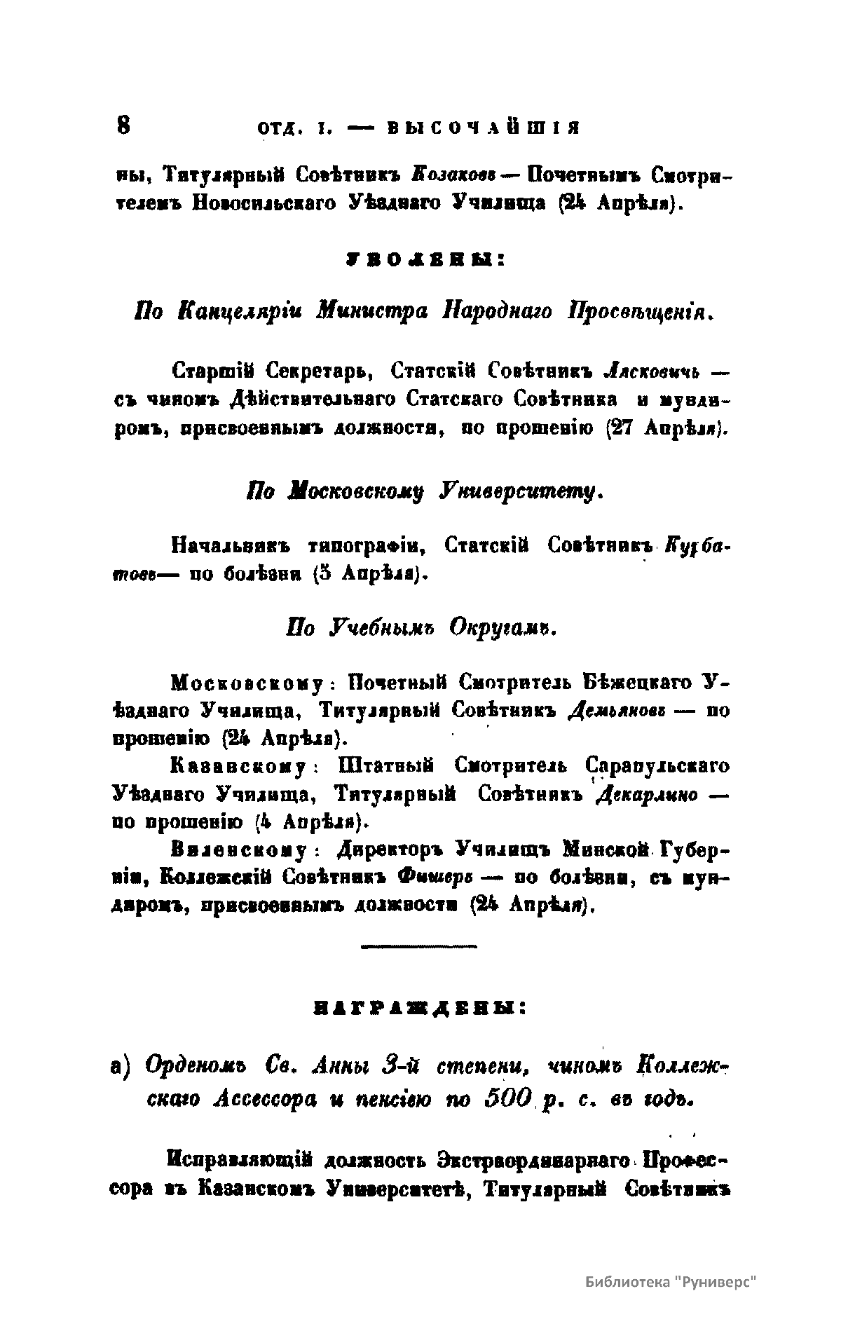 1. «Записки Департамента народного просвещения». Вышло в свет три книги этого издания – в 1825, 1827 и 1829-м годах.