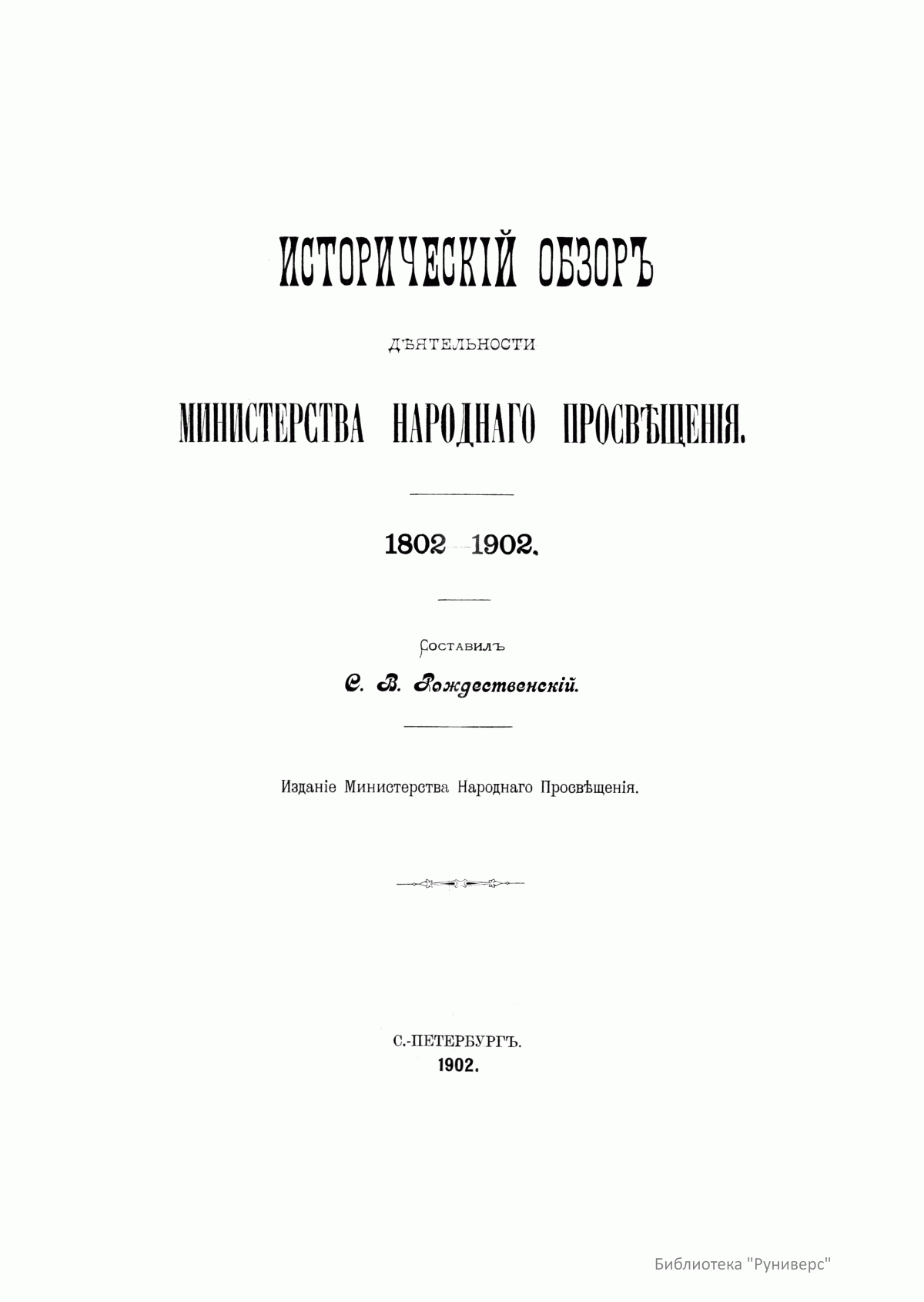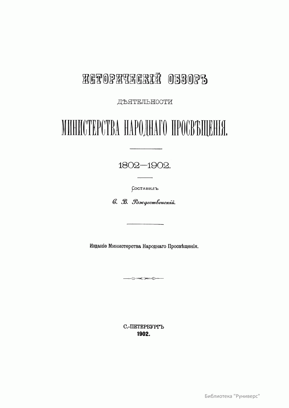 Историческiй обзоръ дѣятельности Министерства народнаго просвѣщенiя. 1802–1902