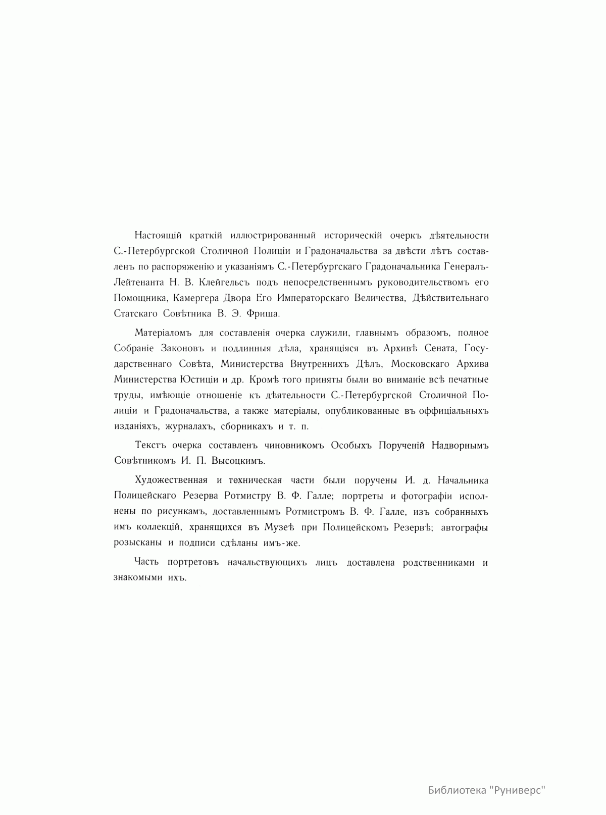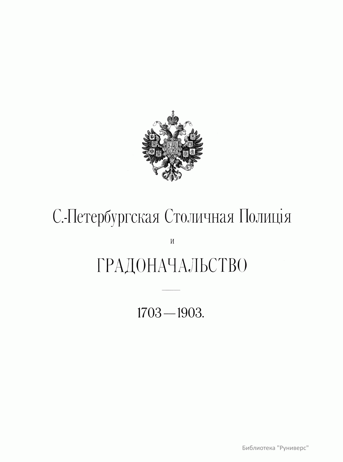 С.-Петербургская Столичная Полицiя и градоначальство. 1703-1903