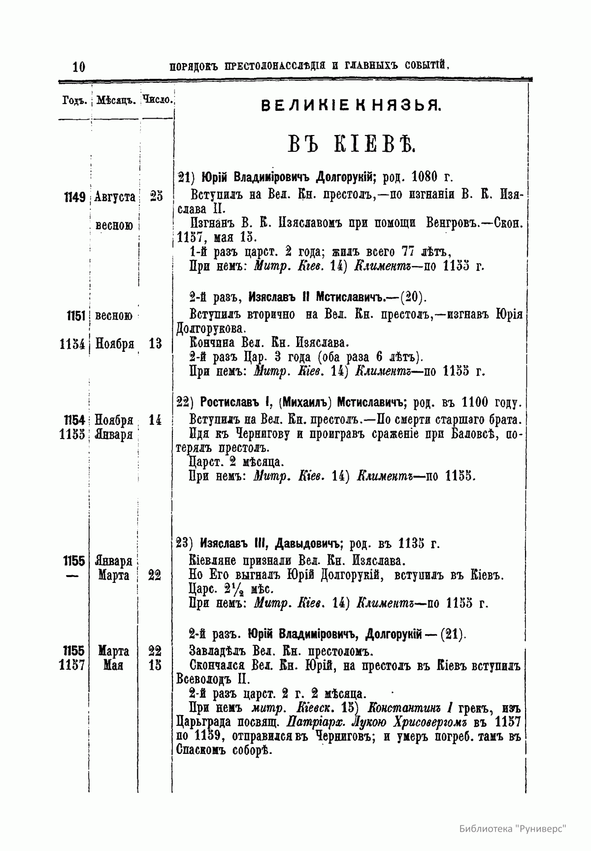 В книге опубликованы две таблицы. В них указан порядок престолонаследия Дома Рюриковичей и Дома Романовых до Александра II, а также сообщаются все основные события, происходившие при великих князьях и царях.