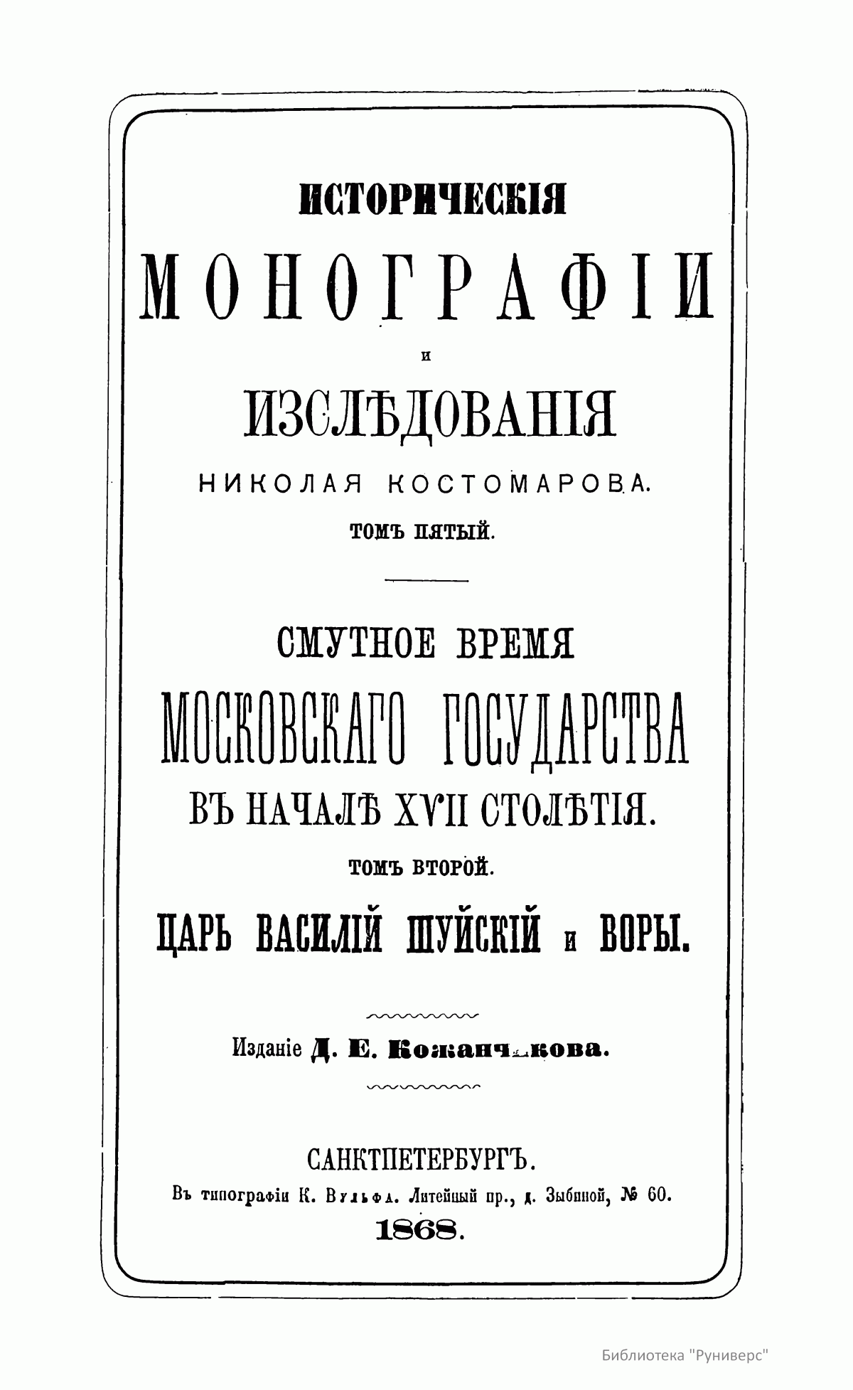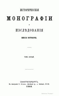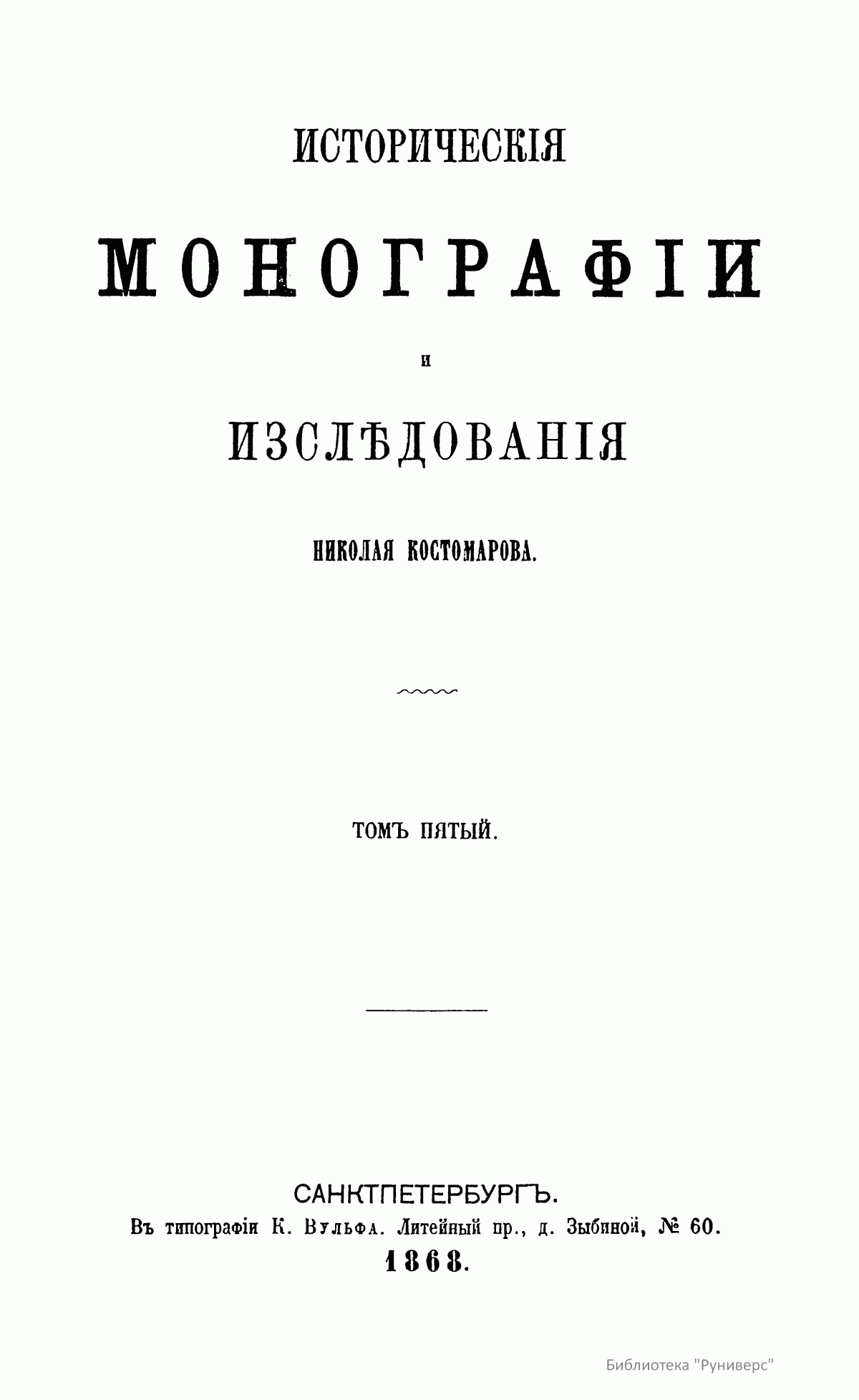 Историческiя монографiи и изслѣдованiя Николая Костомарова. Томъ пятый